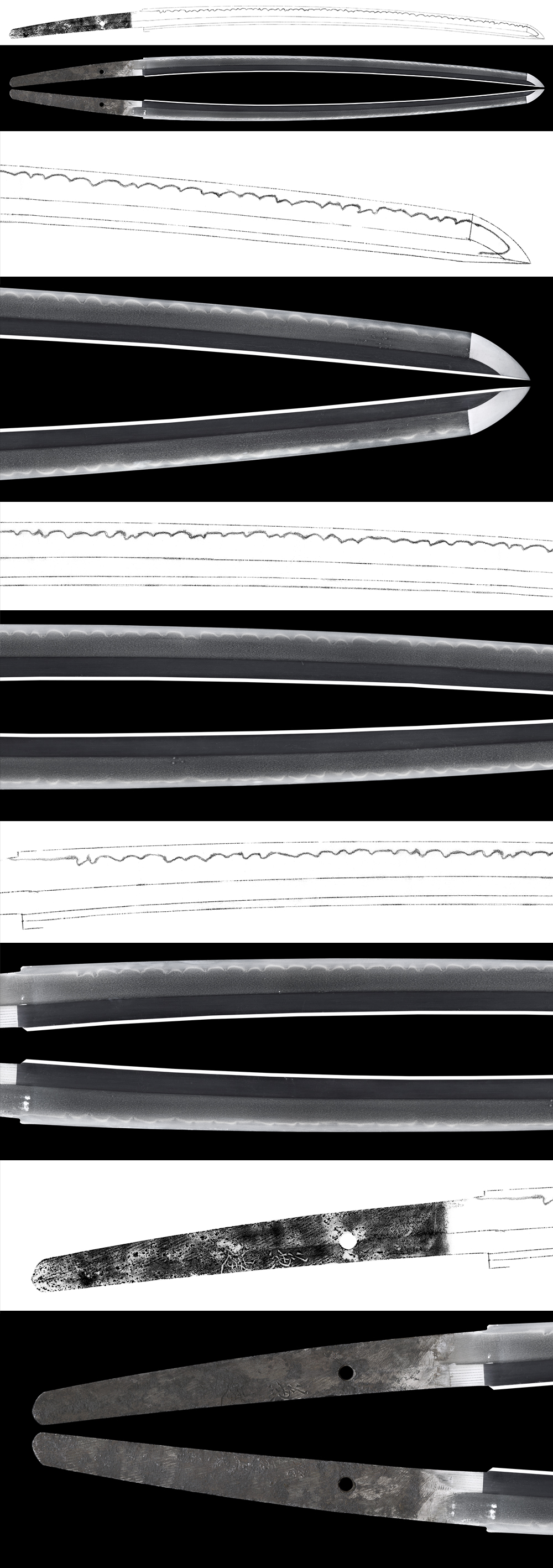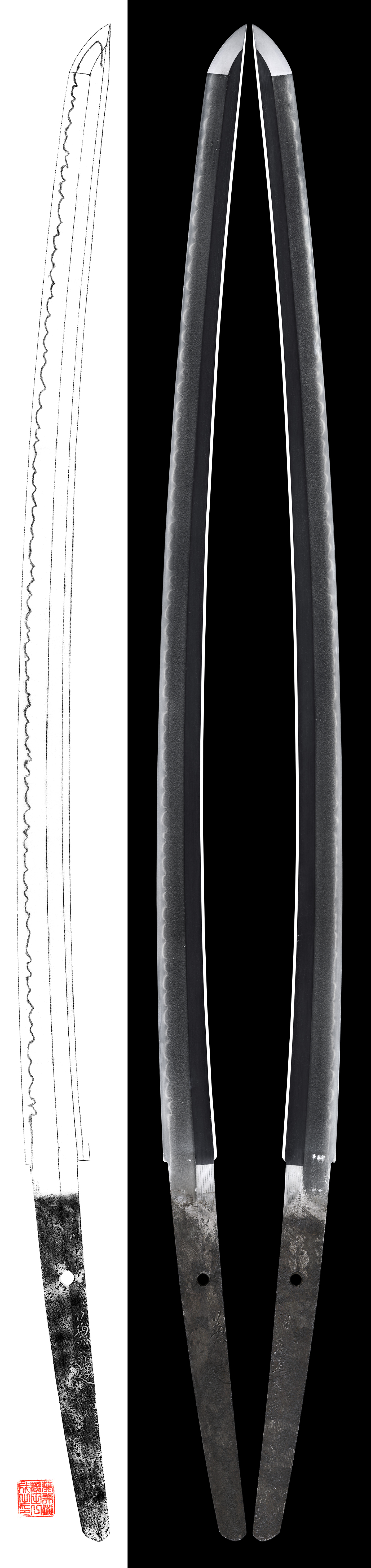 Hamon : Nioideki gunome midair and round shape kissaki hamon.