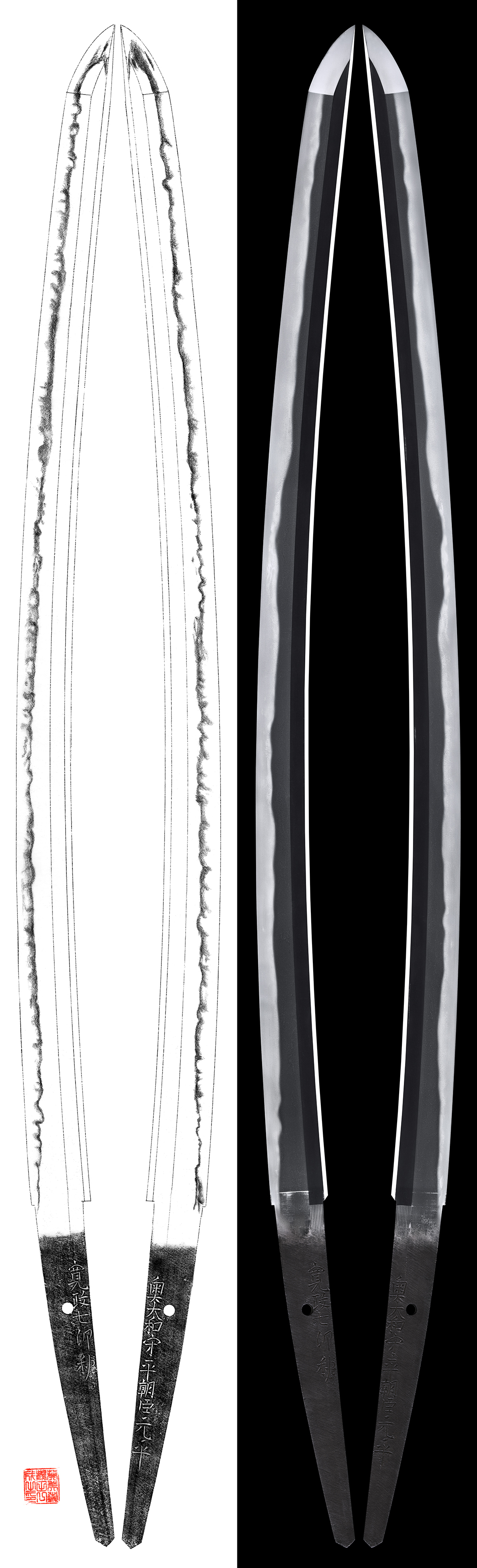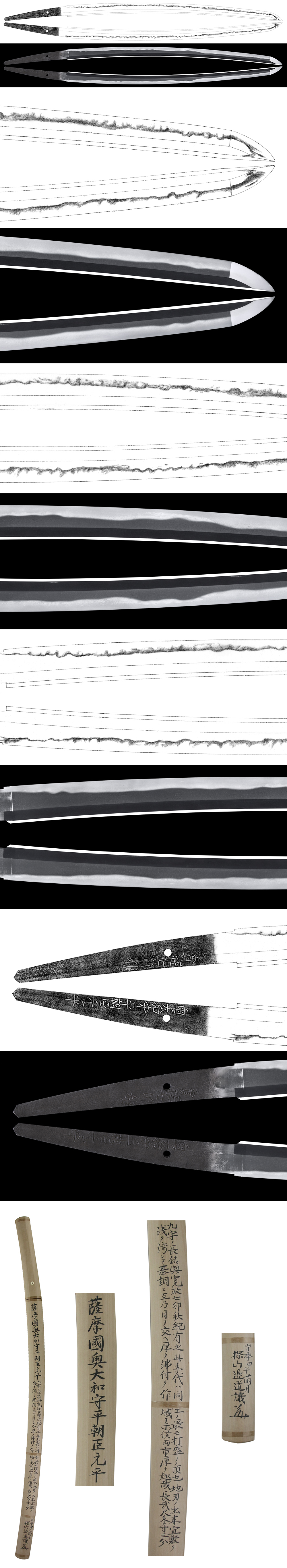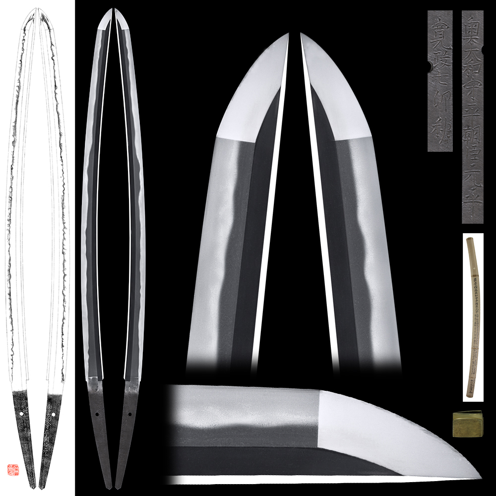 Special feature : Satsuma province produced excellent swordsmiths under the patronage of the Shimazu family. Motohira, born as a son of retaind swordsmith Oku Motonao in 1744 was a representative swordsmith in early Shin-to period. Motohira succeeded the headship of family in 1777 and was appointed Yamato (No) Kami in 1789. His younger brothers Mototake and Motoyasu were also excellent swordsmith and their collaboration still survives. Motohira passed away in 1826, aged 83.
