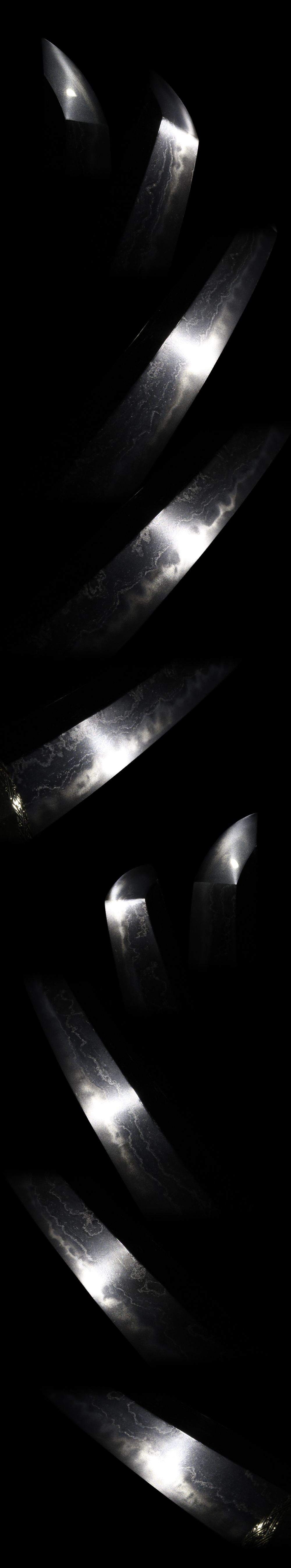 So He challenged to revive old tough Koto blades such like Kamakura period to Nanbokucyo period. His style changed to very simple Suguha Hamon with small Ashi working.