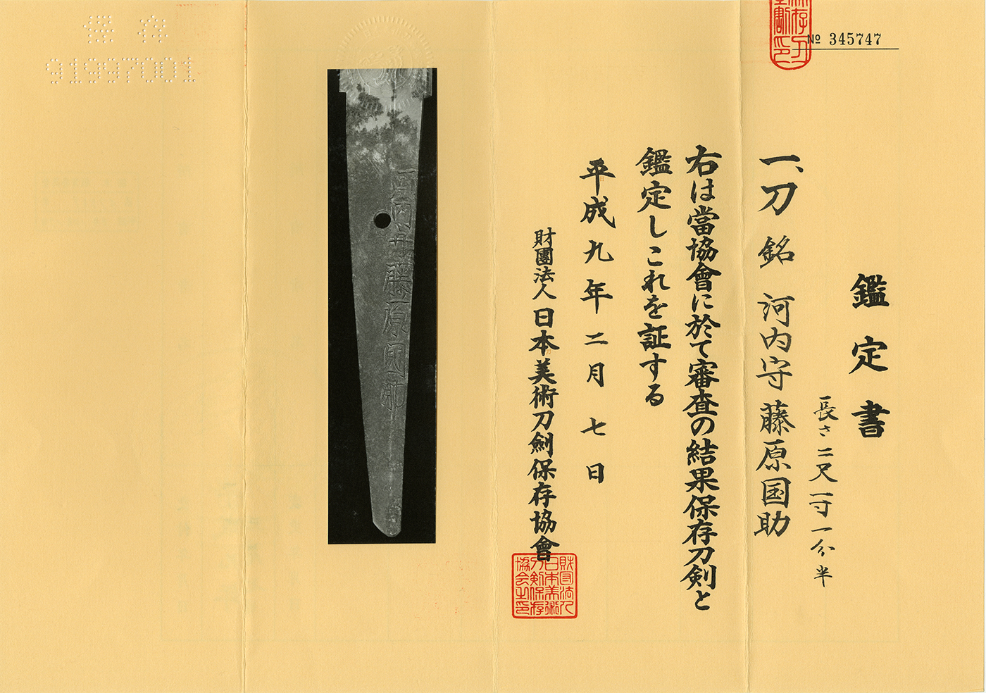 Katana in Shirasaya (NBTHK hozon paper)