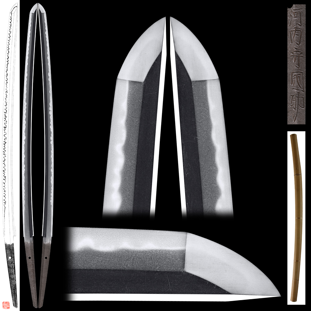 Special Feature : Kawachi (No) Kami Kunisuke the 2nd was commonly called Naka-Kawachi(Middle Kawachi, he was between the 1st and the 3rd). Beacuse of the brilliant hamon he was also called Shinto-Ichimonji.
