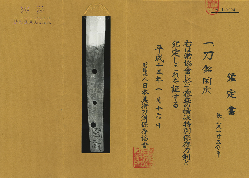 Special feature : Kunihiro was born in Huga province, and he was a hired swordsmith of Ito family.