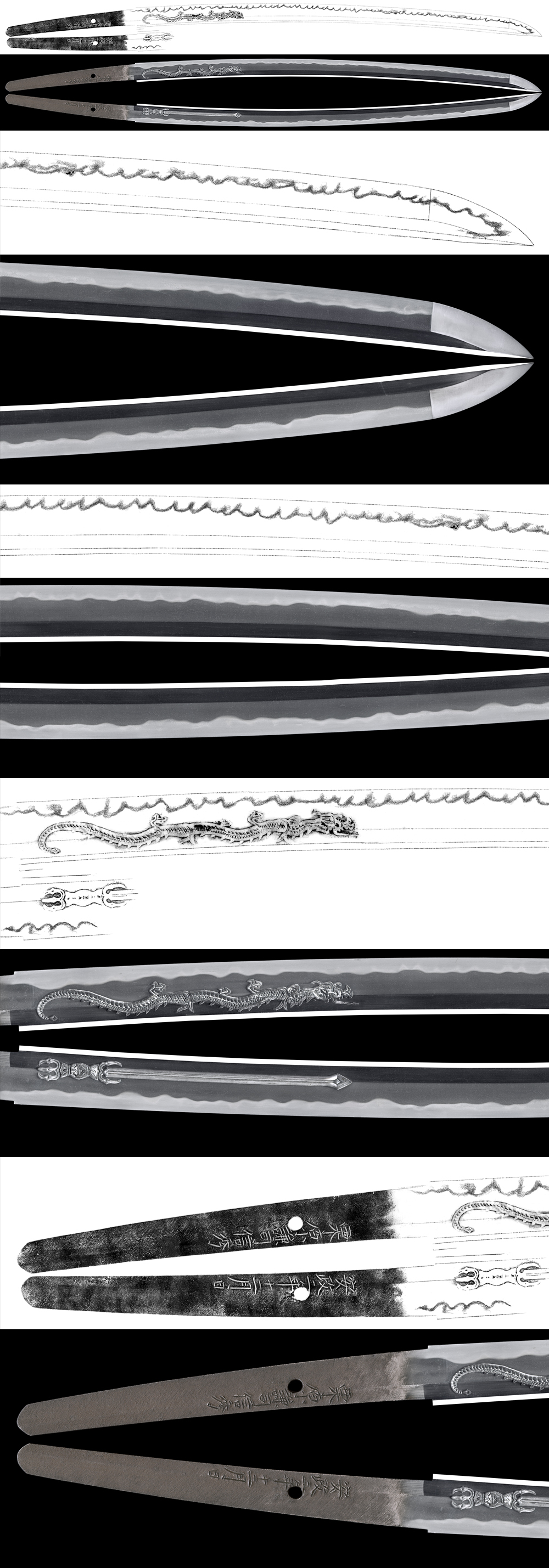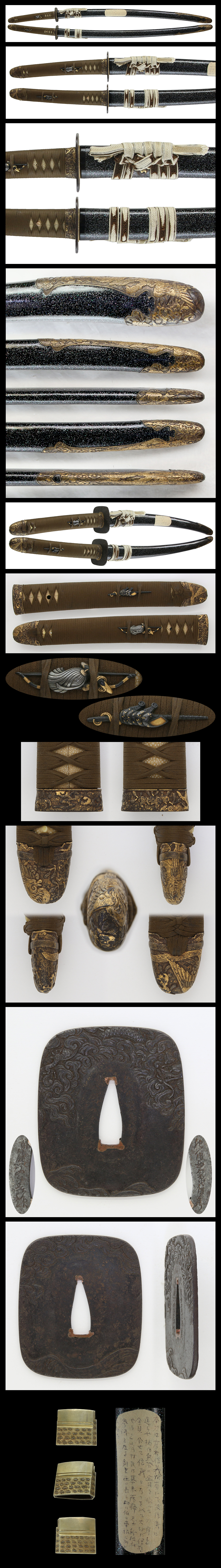 Tsuba : Iron Tsuba, doragon, clouds and wave are engraved.