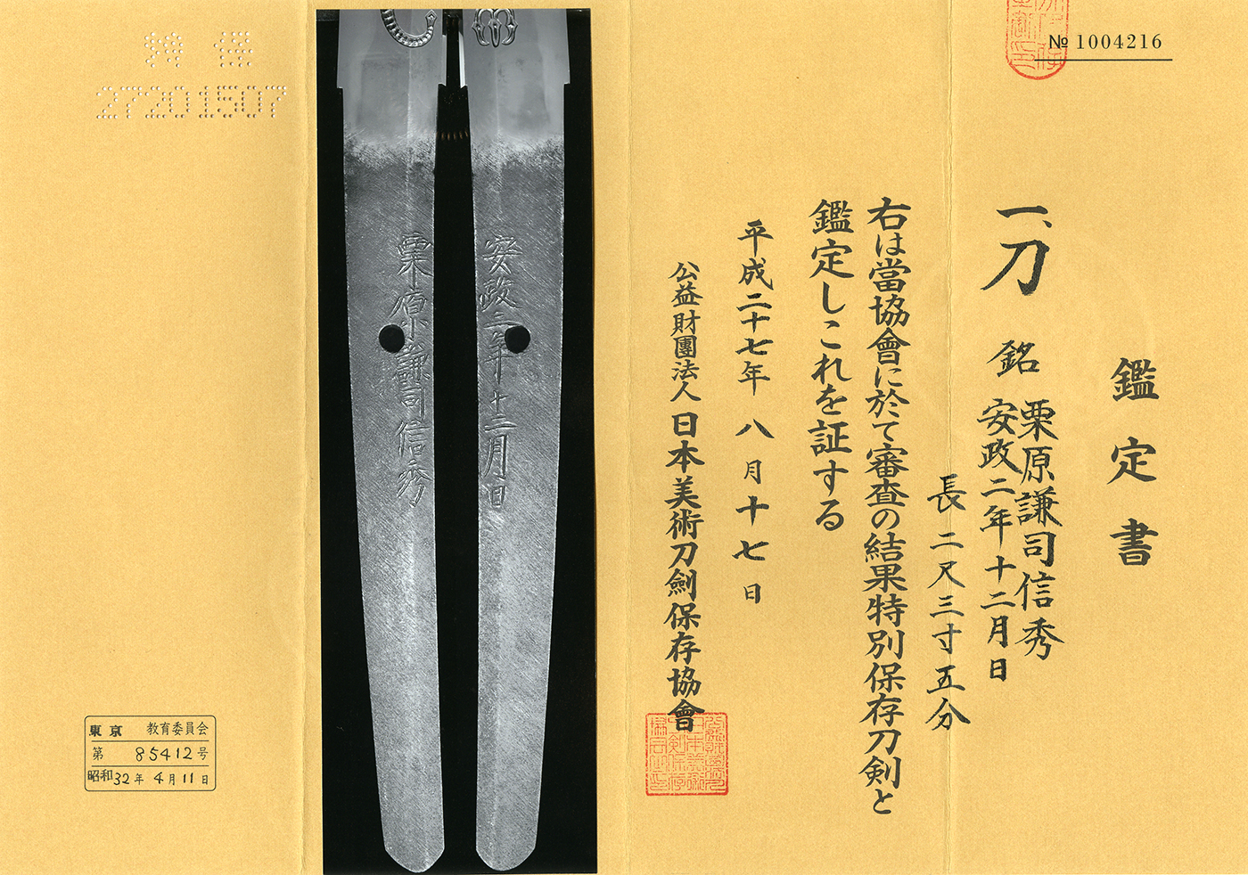 Katana : Kurihara Kenji Nobuhide/Ansei 2 ne 12 gatsu Hi (December 1855)