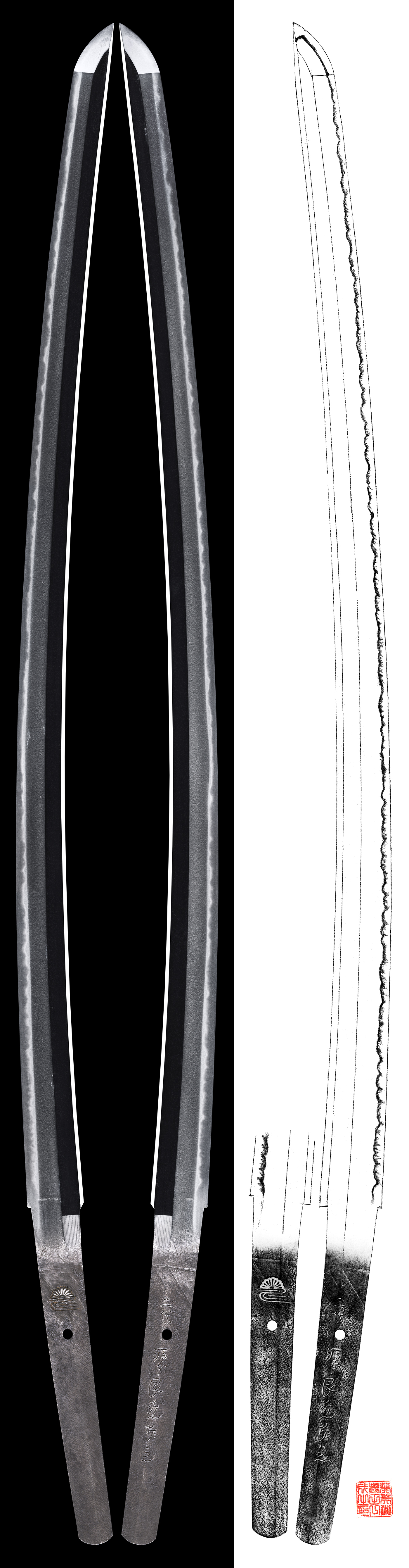 This katana has a habaki that is made as Kikusui-To of Minatogawa Shrine.