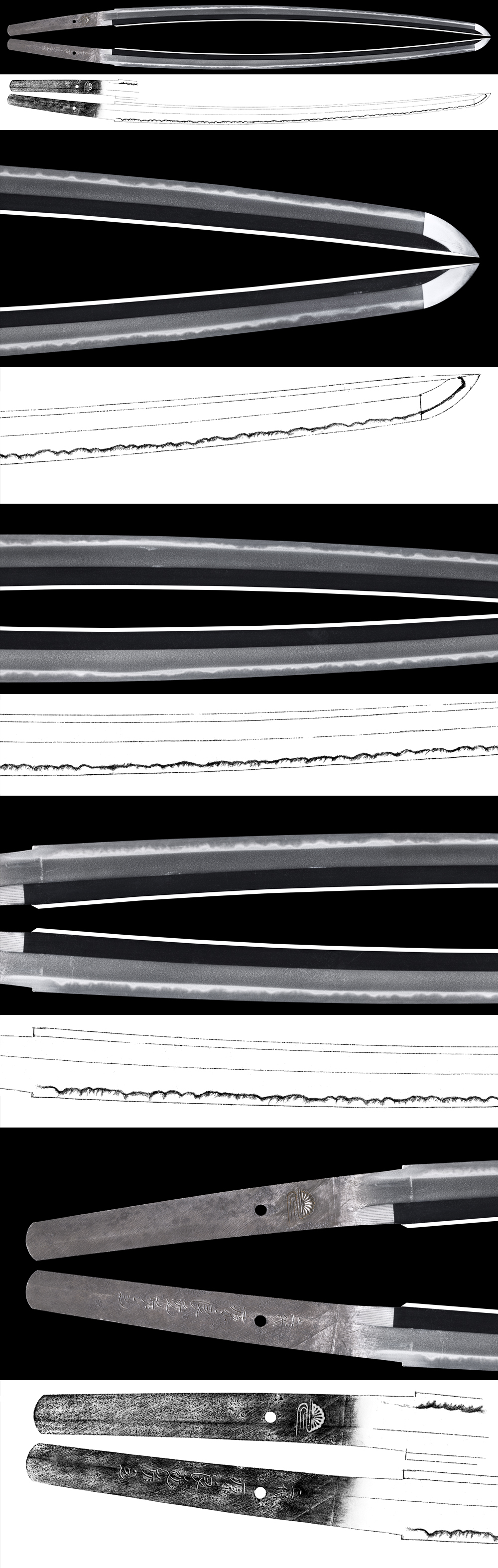 Hamon : Nie Deki Gunome midare with clear and deep Nioiguchi Hamon.