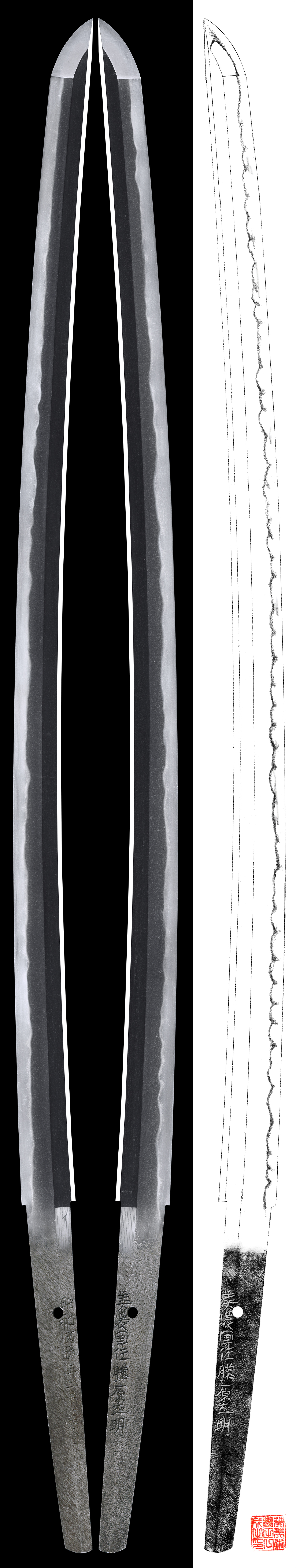 He used homemade iron and engraved the signature as "Naoe Kanetsugu Saku" and "Mino Koku Ju Fujiwara Masaaki".
