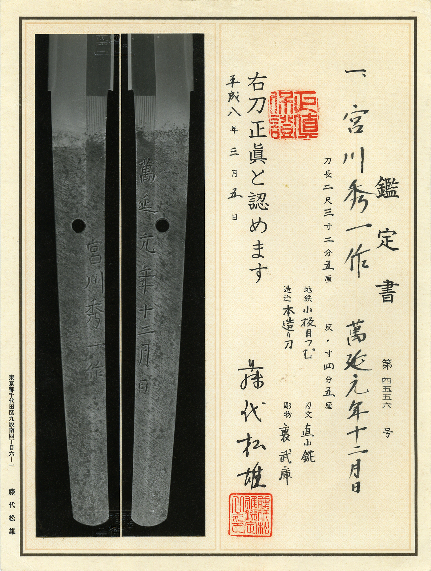 Katana: Miyakawa Hidekazu Saku / Manen Gannen 12 gatsu hi.(Edo Period Manen 1st year December) 1860,December.