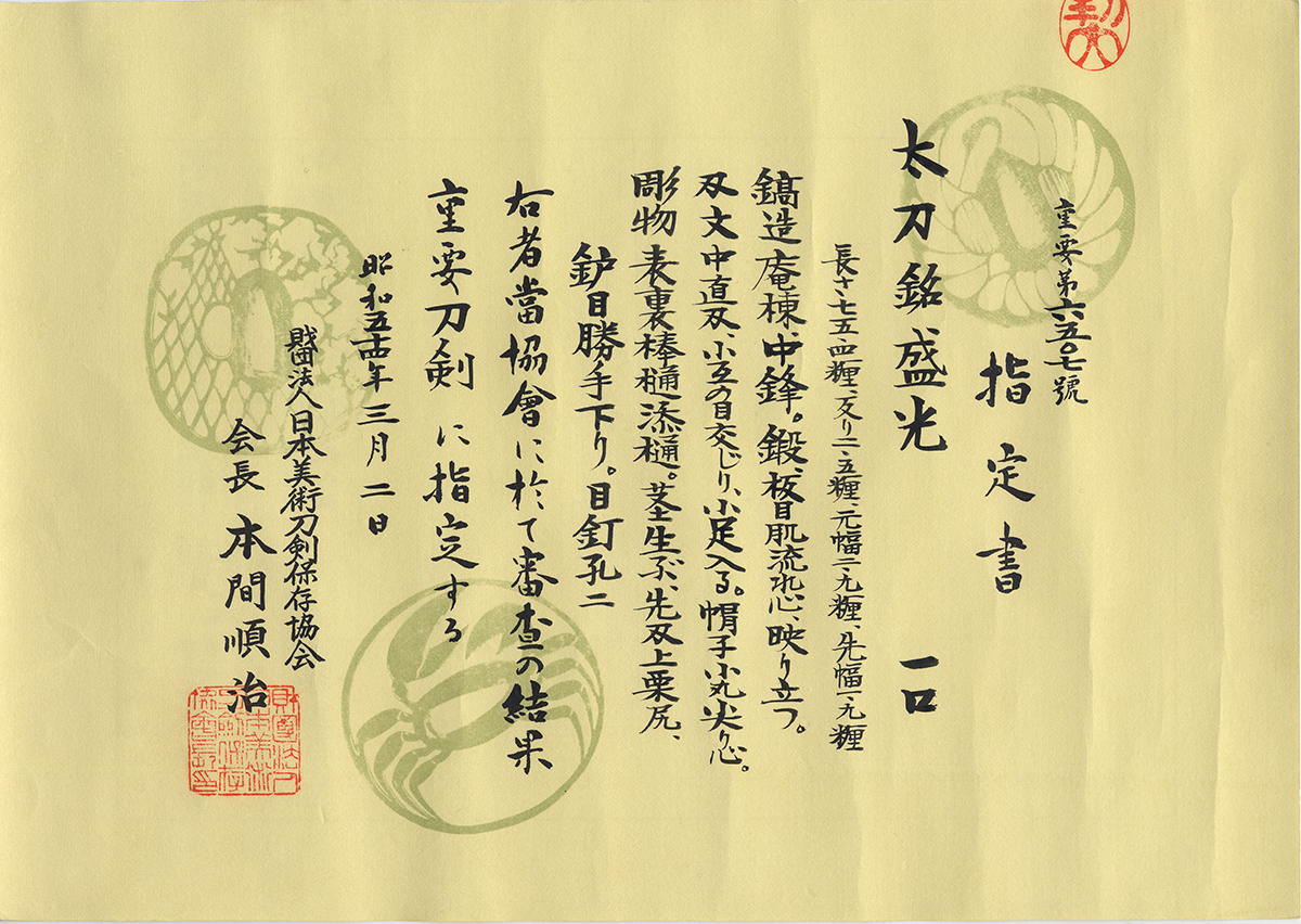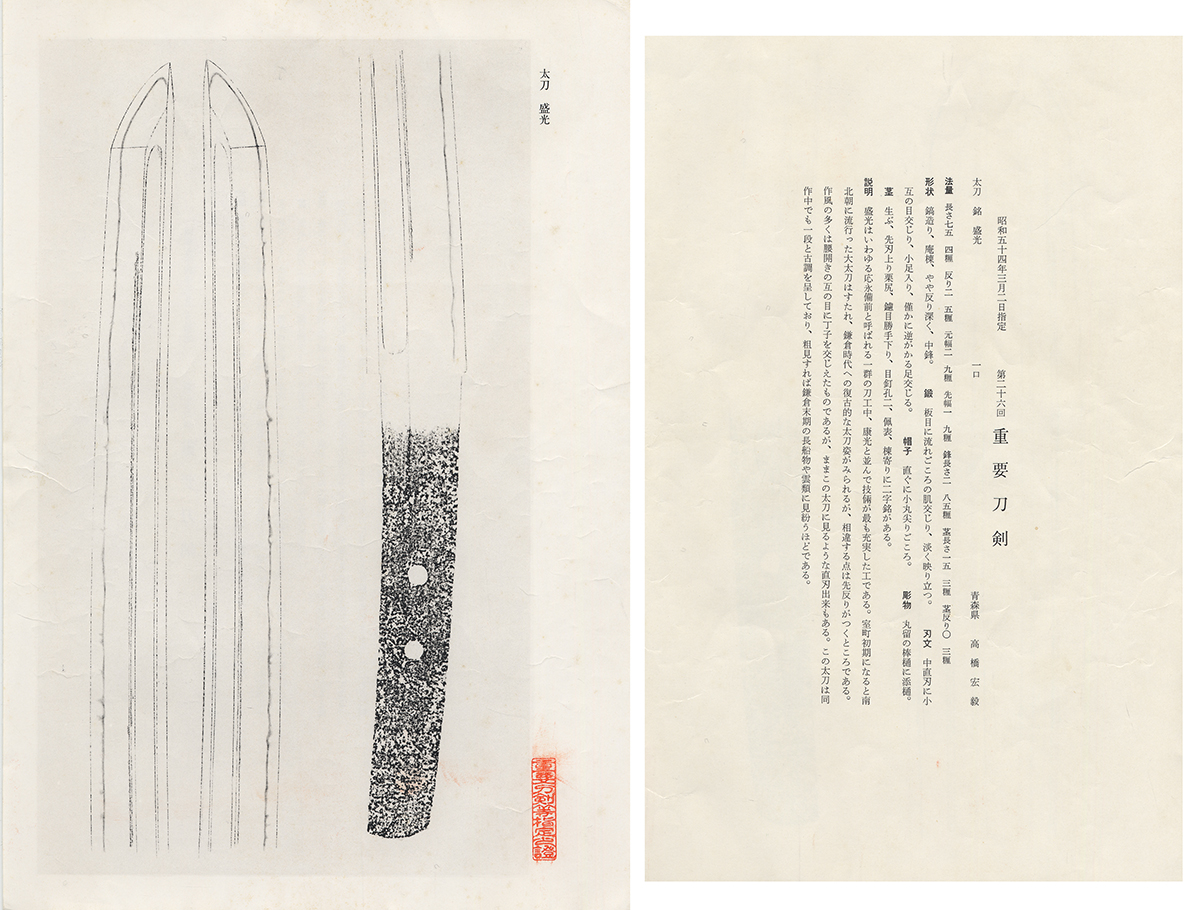 Katana: Morimitsu (NBTHK 26th Juyo Paper)