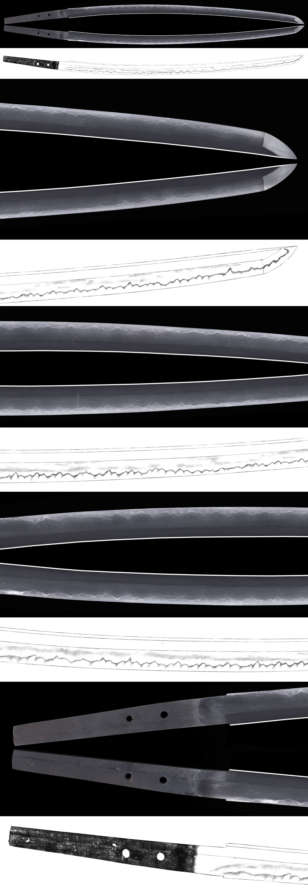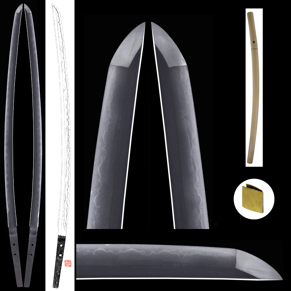Hamon : Nioi base with mixture of konie. Gunome shoji style. Boushi is notare loose round end.