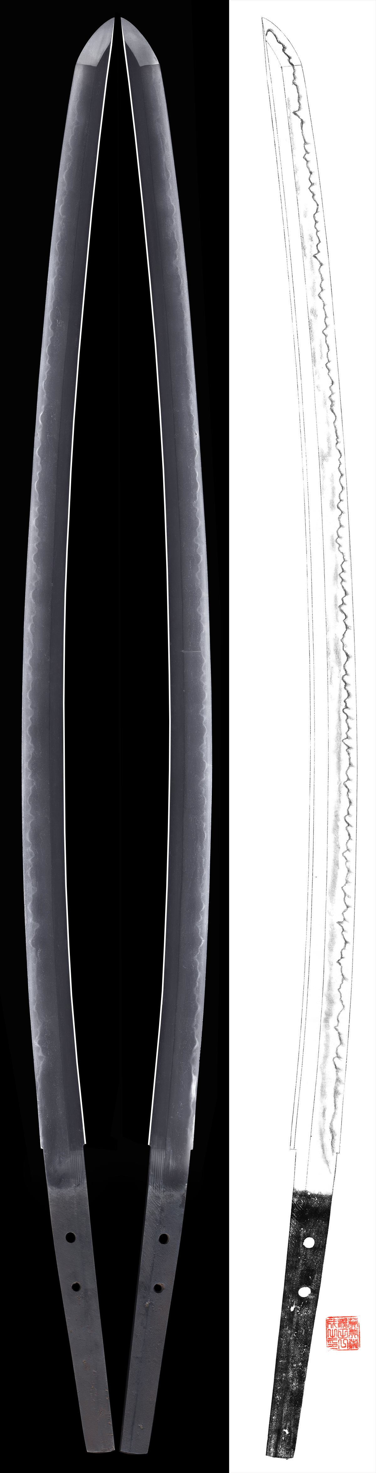 Shape : It is wide and thick with deep sori. It is nice shape katana.