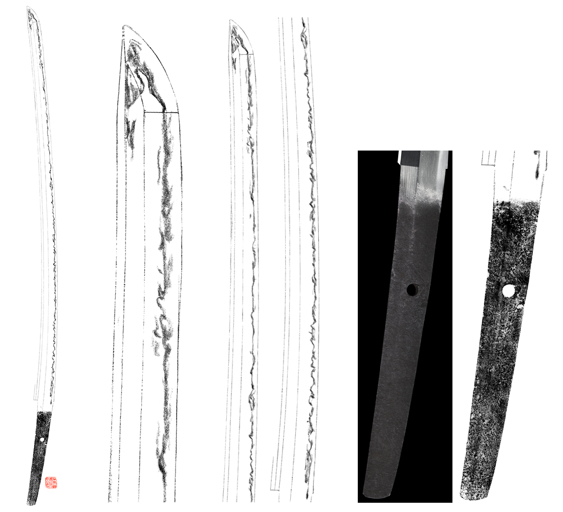 with sunagashi, yo and small kinsuji work. Boshi is midarekomi style.
