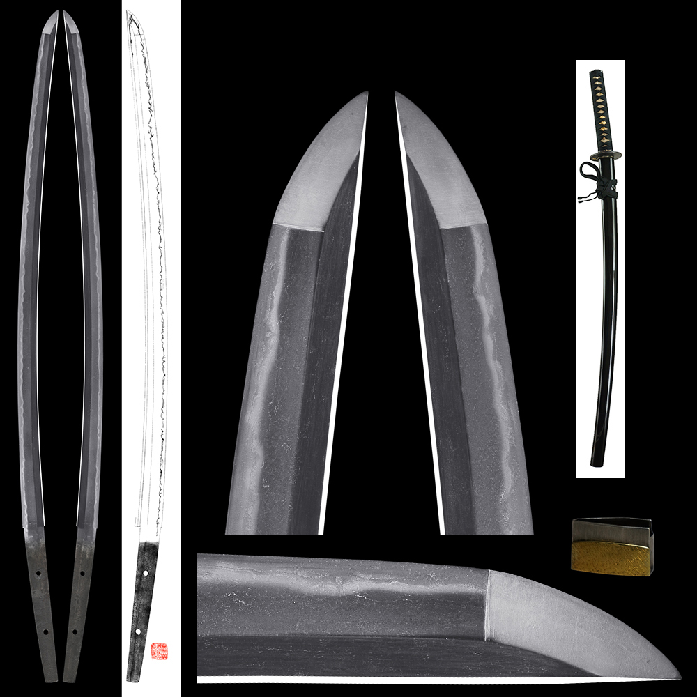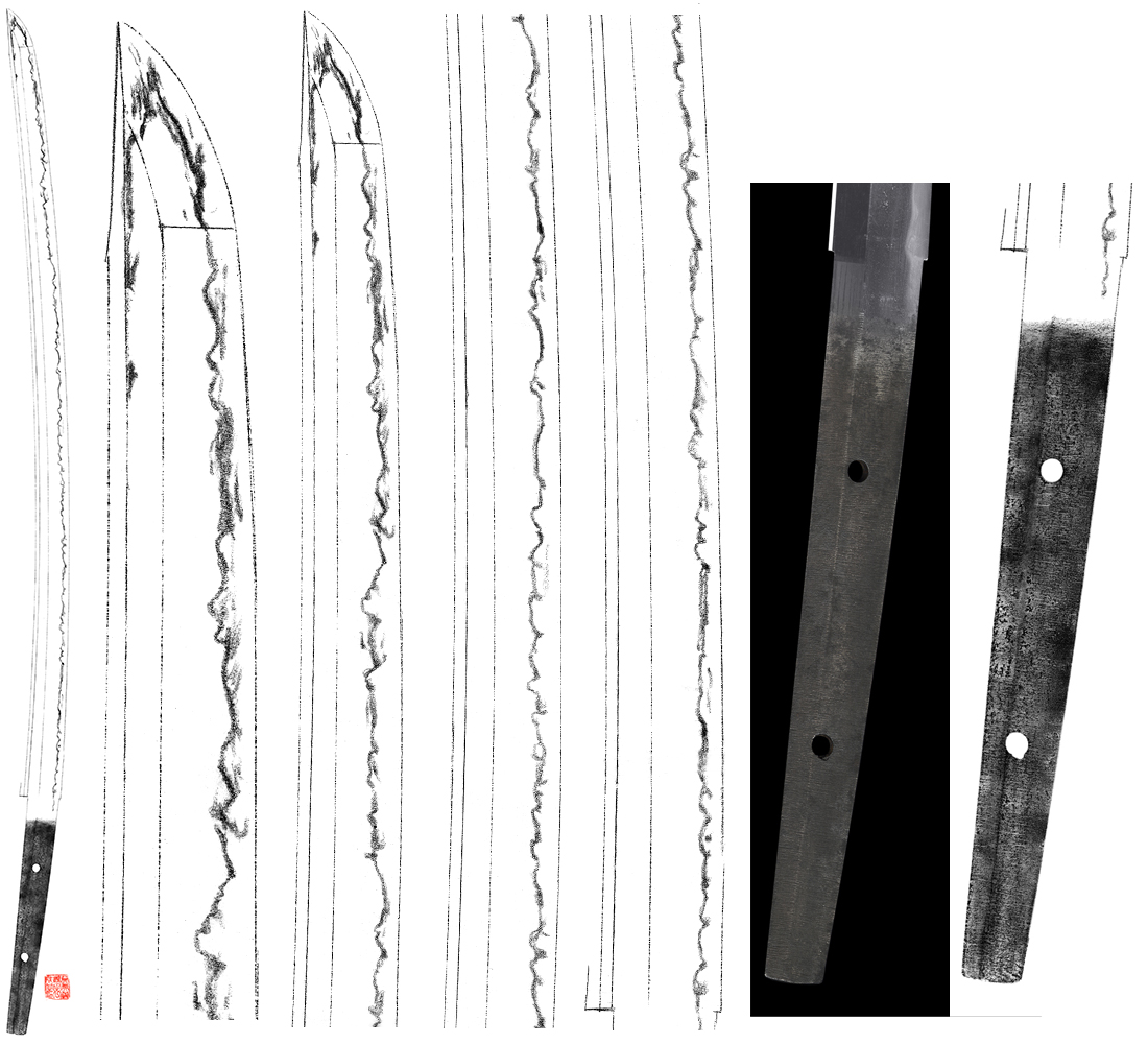 Shape : The blade is oosuriage mumie(cut shortened) and regular size with deep sori nice looking shape.