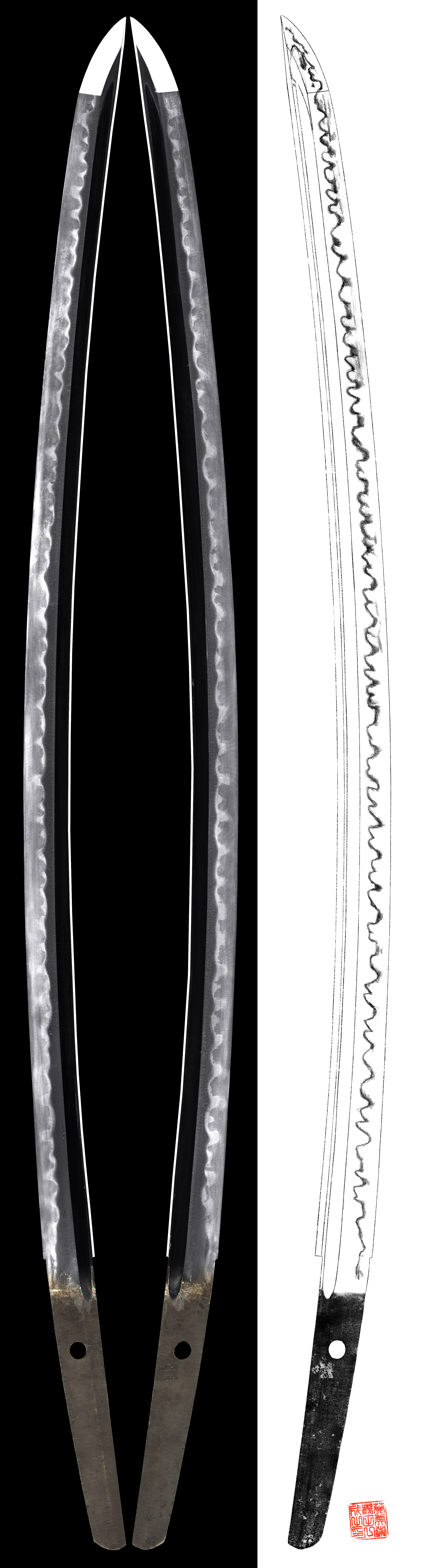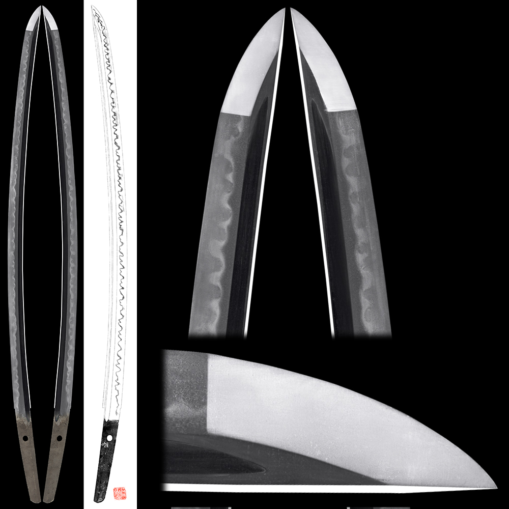 Shape : The blade is wide and thick with deep curve with Ookissaki and Bo-hi engraved both sides of the blade which is beautiful nice looking shape.