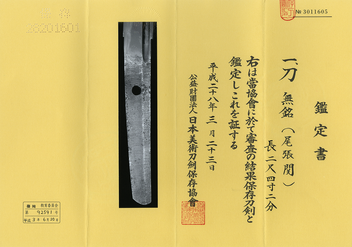 Signature : Mumei (unsigned) attributed as Owariseki school.