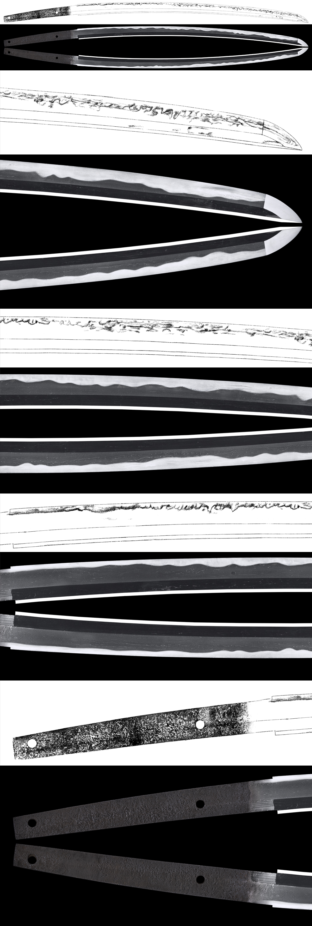 Shape : The blade was suriage(cut shortened) and regular sized motohaba and thickness with deep sori elegant shape.