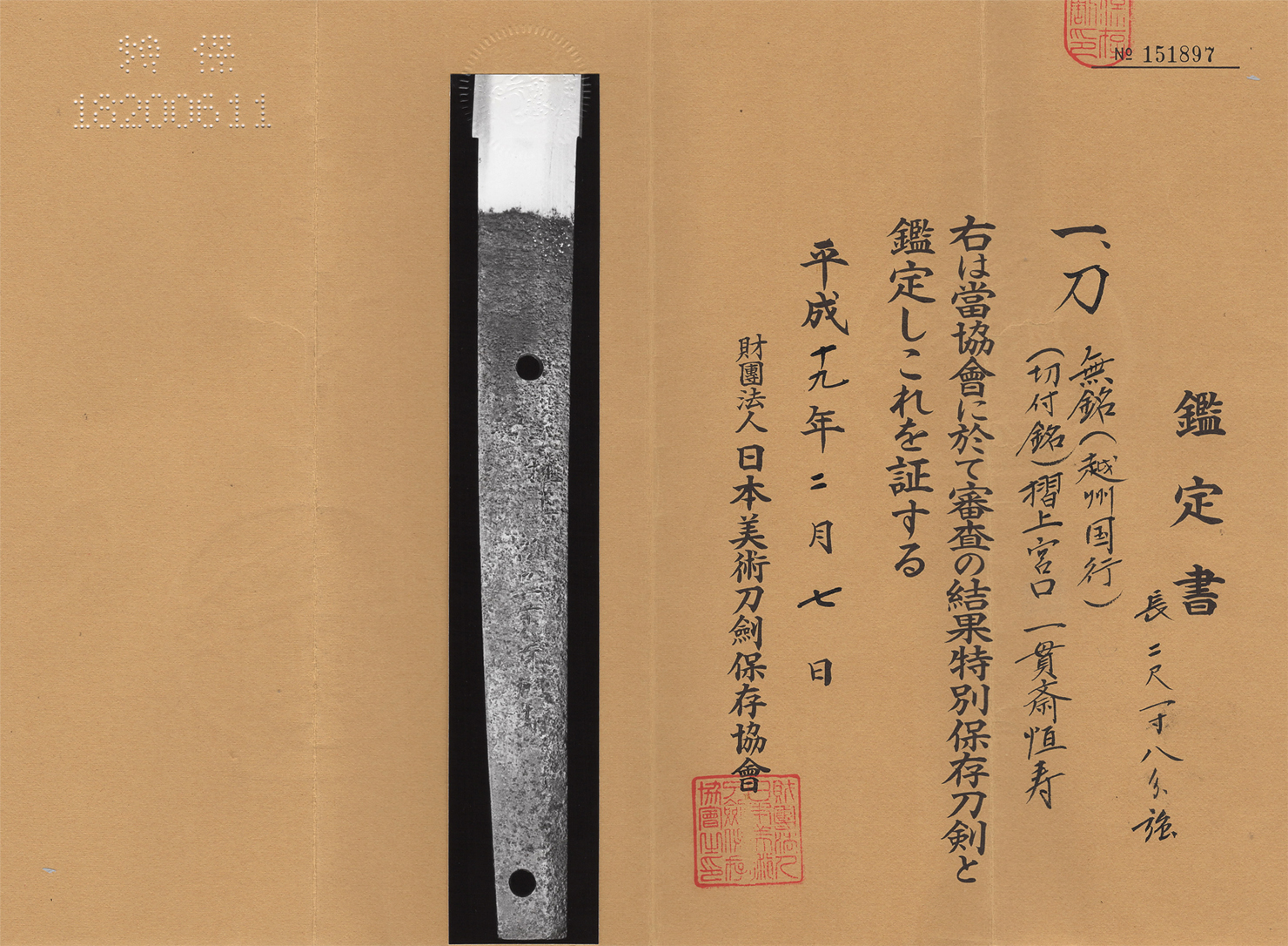 This Mumei (Esshu Kuniyuki) belongs to Jyo saku ranking.