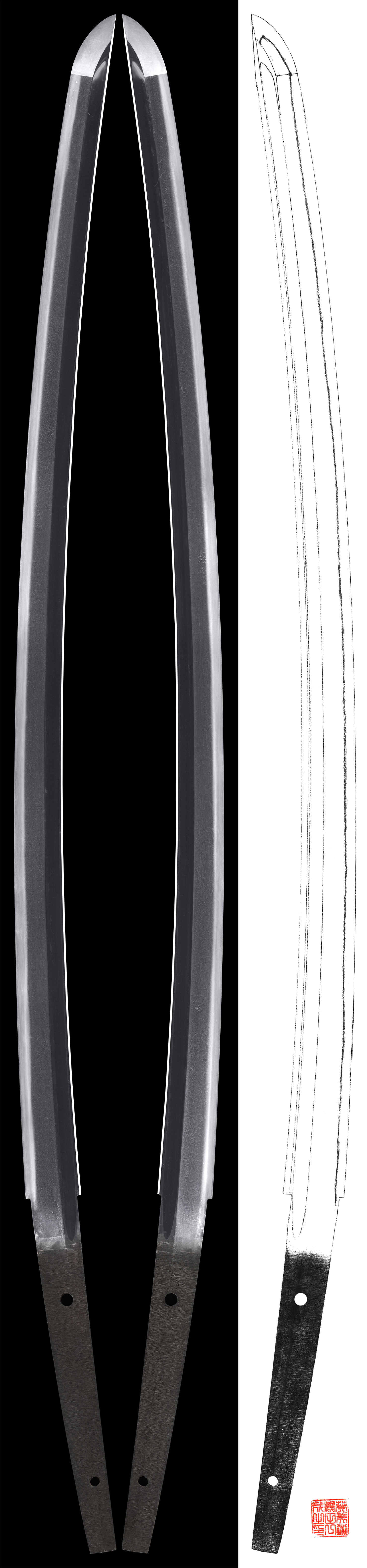 Shape : The blade is oo suriage mumei(cut shortened) with bo-hi engraved.