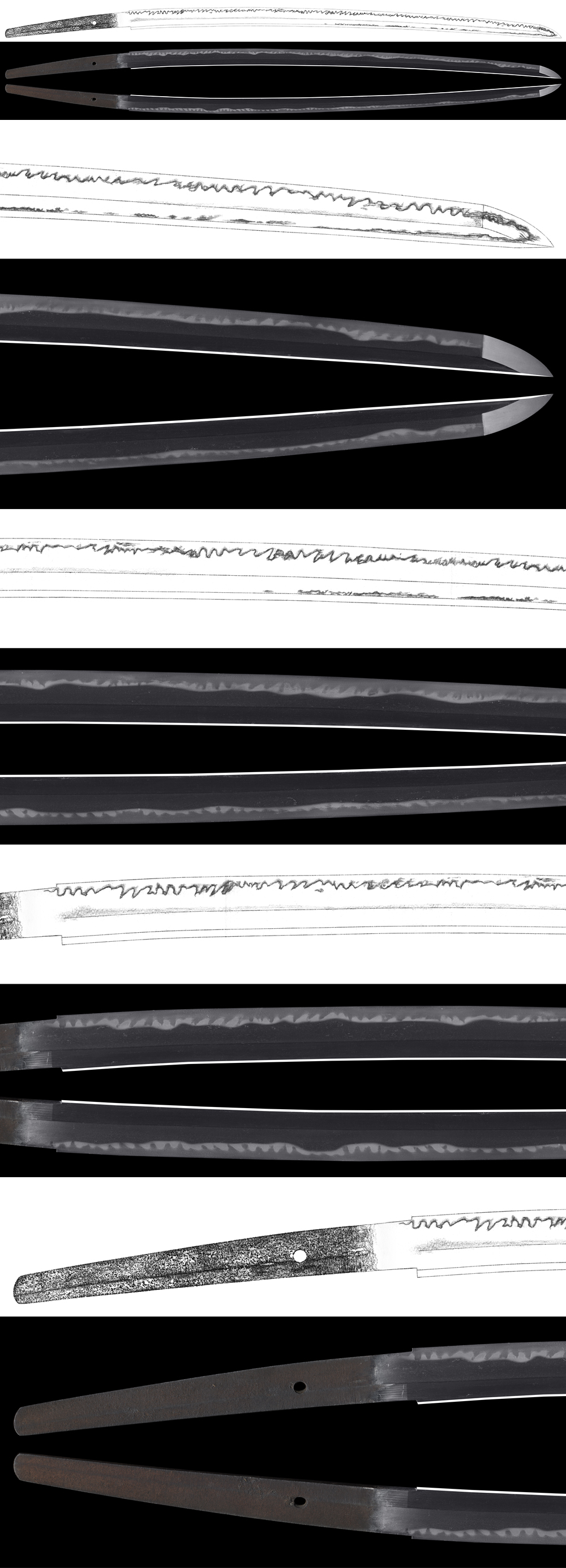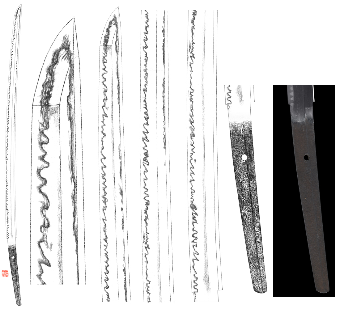 Hamon : Nie based gonome Gonome midare mix with ha mixed with ashi attached. There is active streaks of sunagashi and kinsuji seen