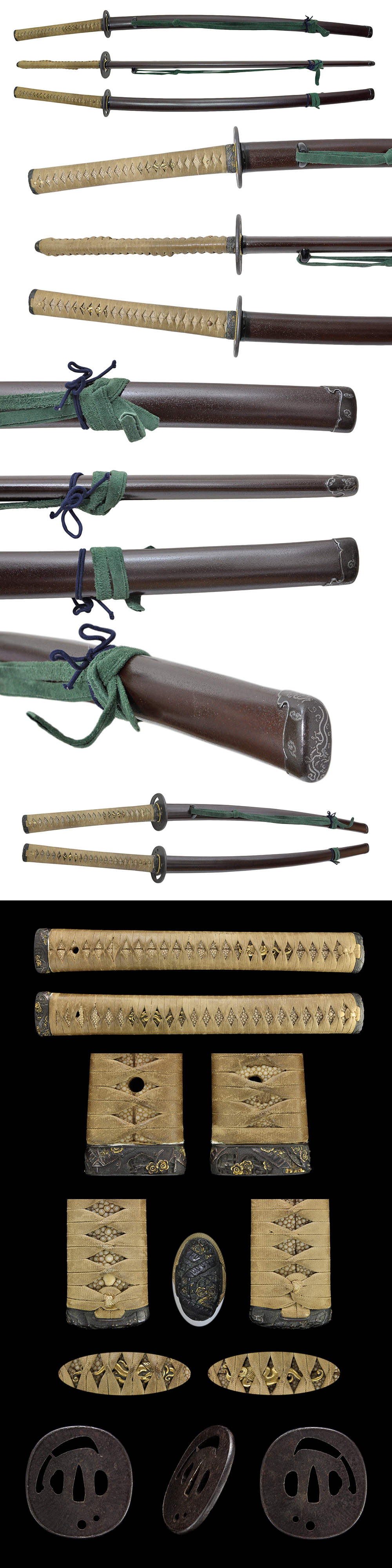 thick Gonome midare, Sanbonsugi Mino pieces. There is no kizu or flaws. From the blade, it reminds of MIyamoto Kanemori, Inshuu Aizu Ju Kunimune, to Sekizentei Chikanori Second Generation.