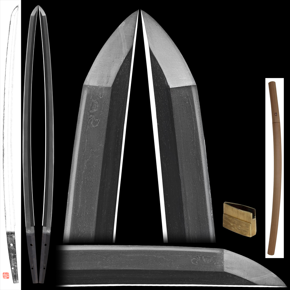 Hamon : niedeki suguha with koasha and uchinoke and double hamon. Boshi is yakizume style hakikake boshi.