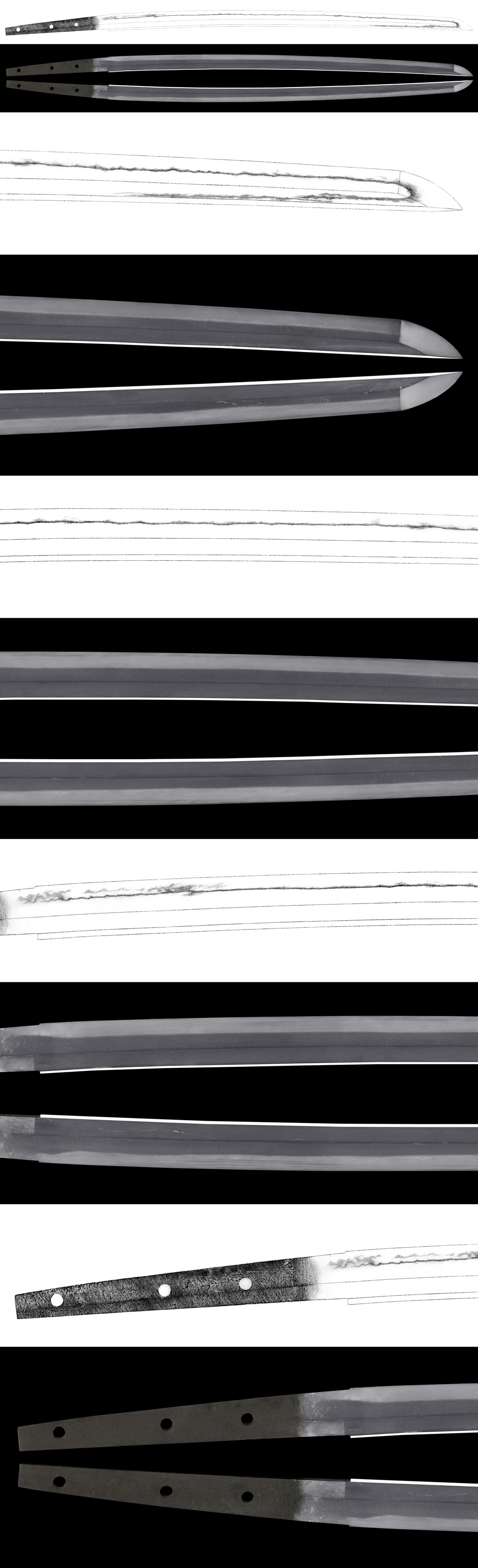 Shape : The shape is wide and tim the sori is rather shallow. It is oosuriage mumei blade.