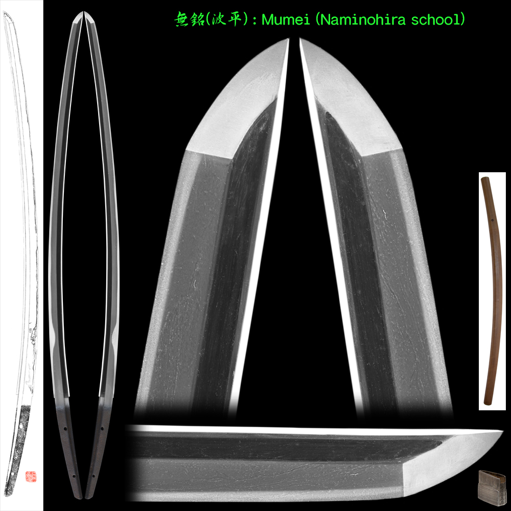 The special feature of Naminohira School is its traditional Suguha-hamon and well-grained blackish Jigane.