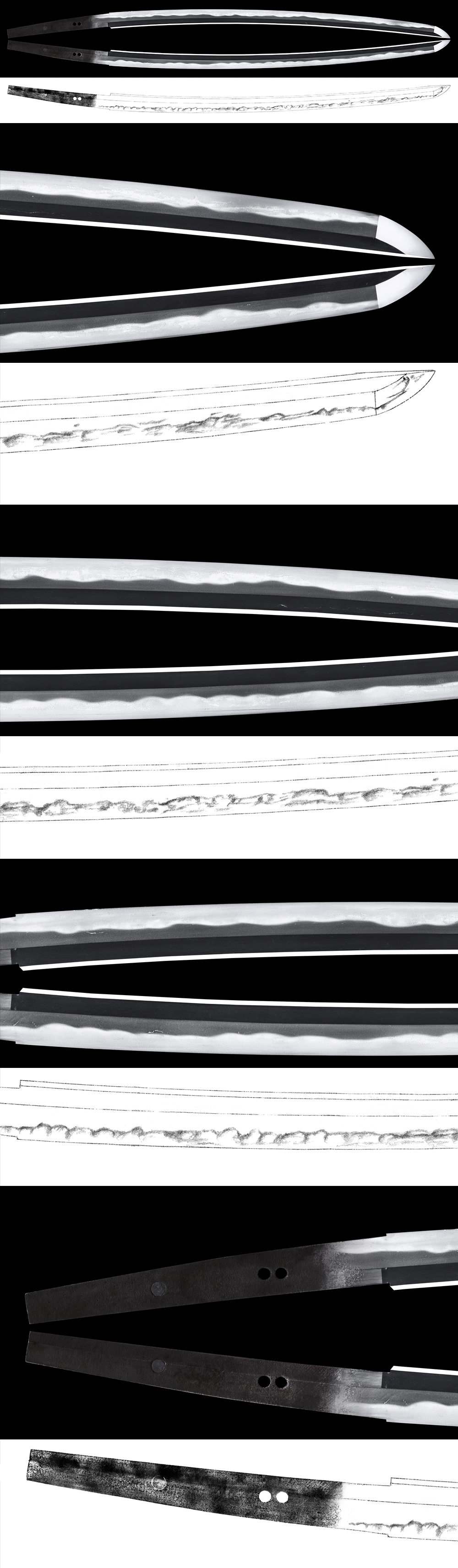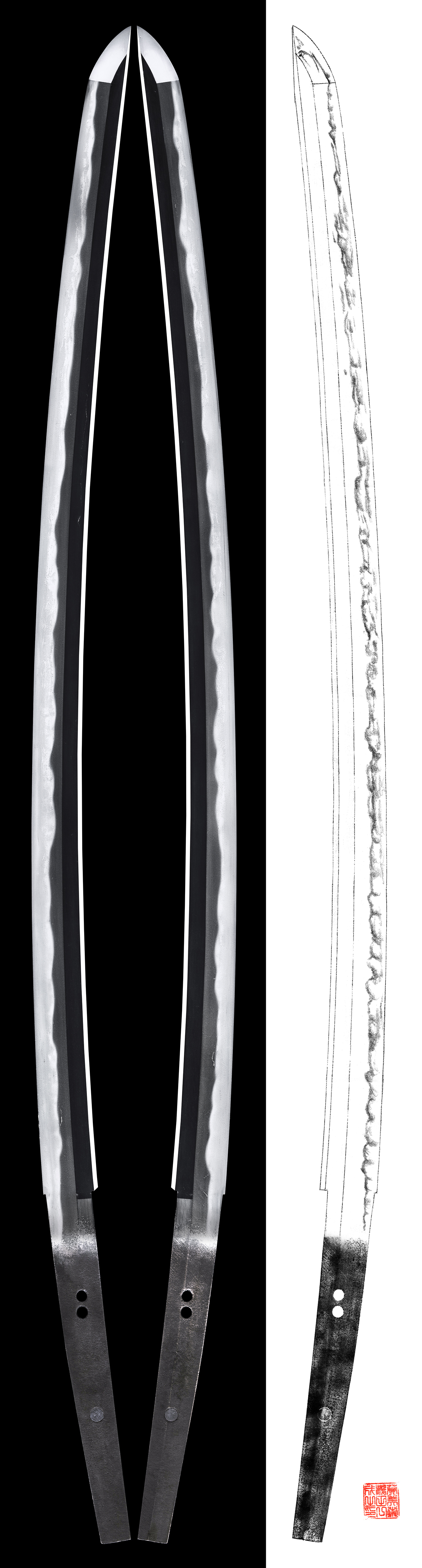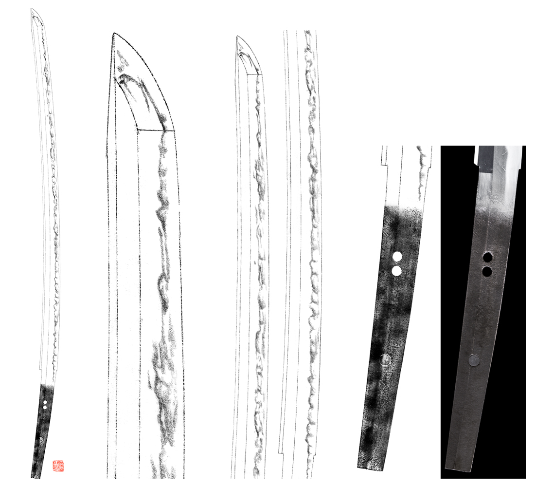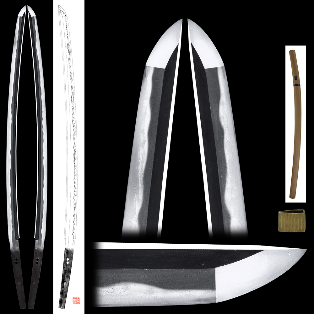 Shape : The blade is oosuriage mumei and wide and thick with deep sori nice looking shape.