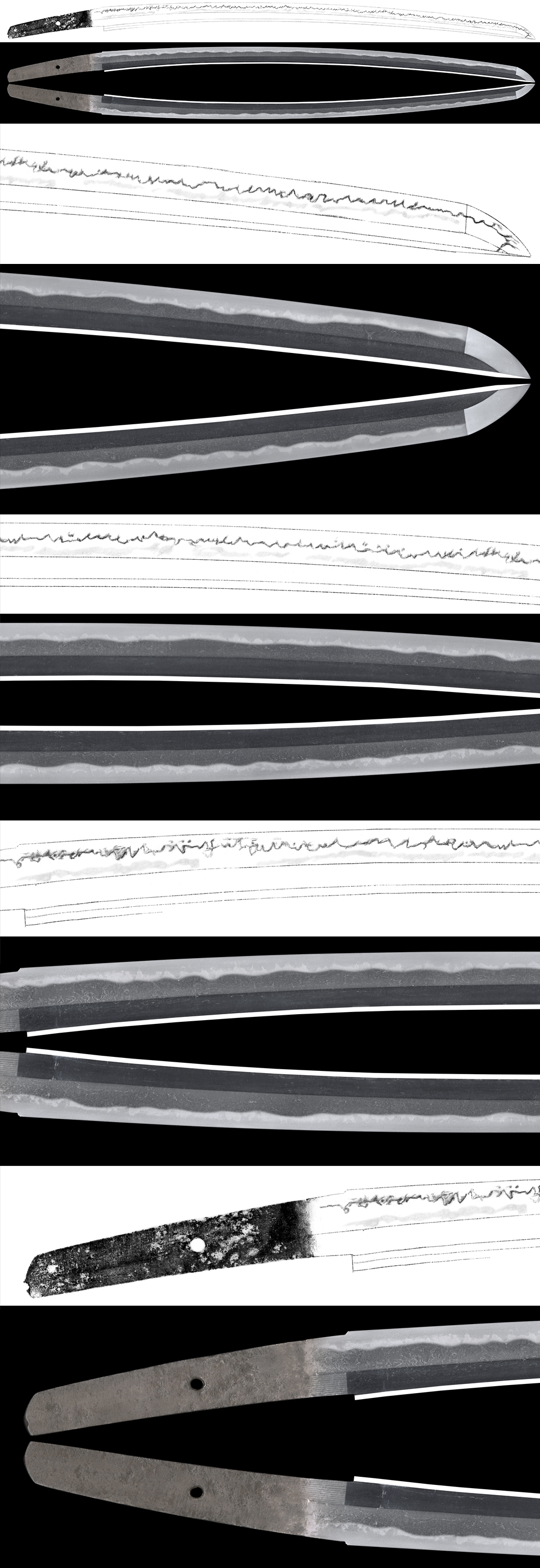 Hamon : Ko Nie Deki and Nioi Deki, The mixture of Ko Gunome Midare and Choji Midare.