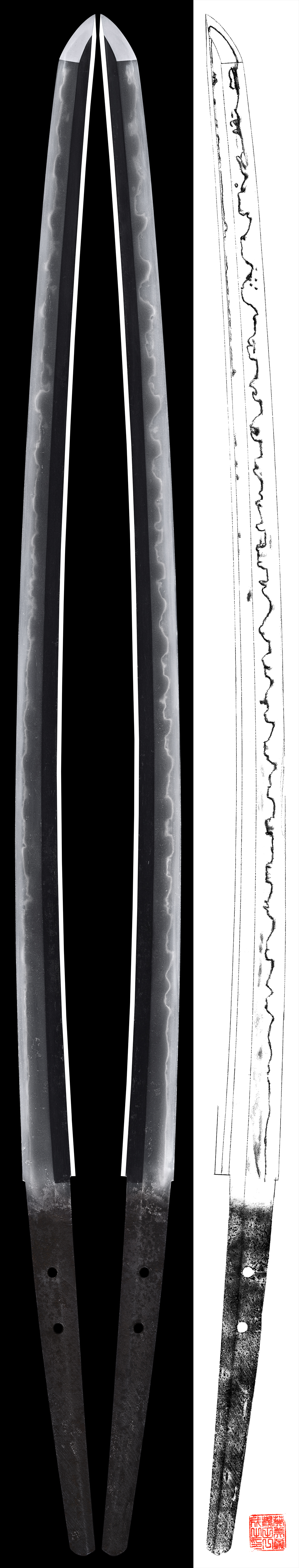 Hamon : Consisted in nie structure, it is gunome midare lines with