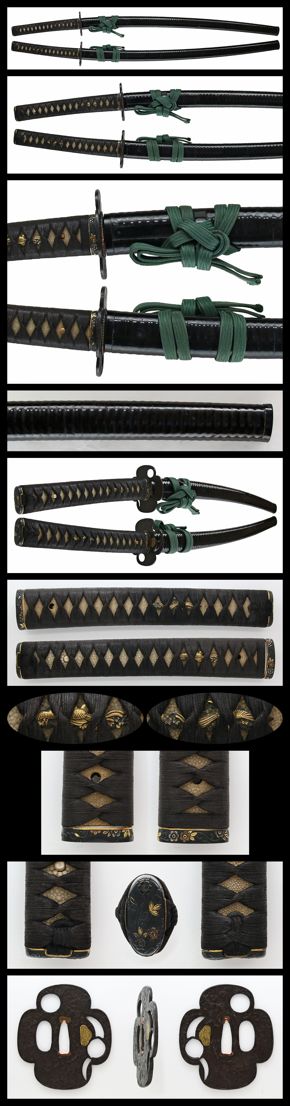 Menuki : Bird and flowers are engraved with gold color.
