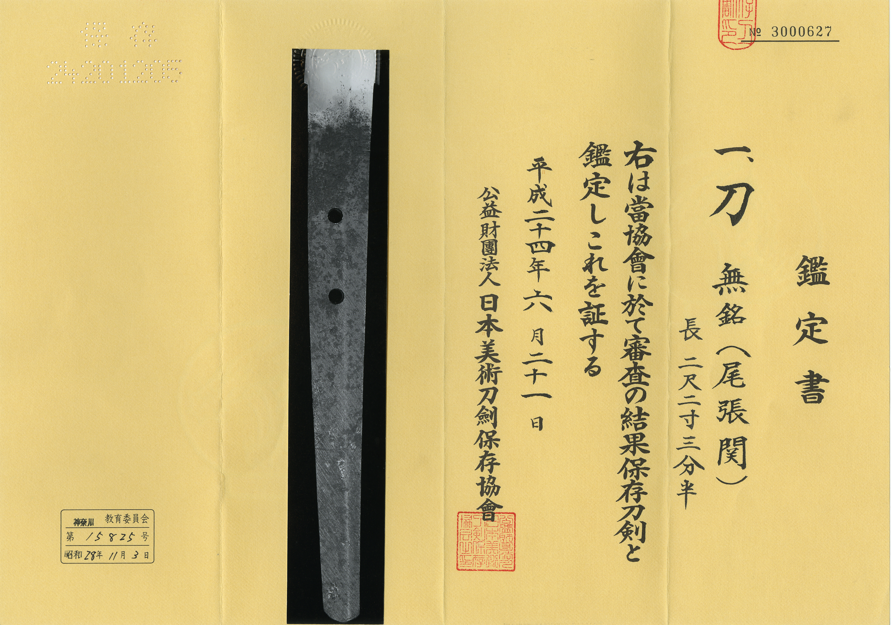 Aoi Art estimation paper : whole Oshigata.