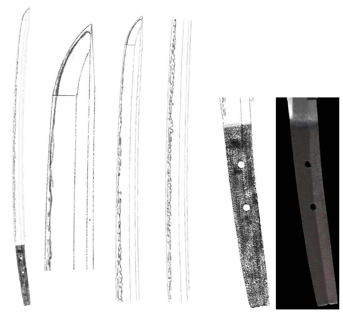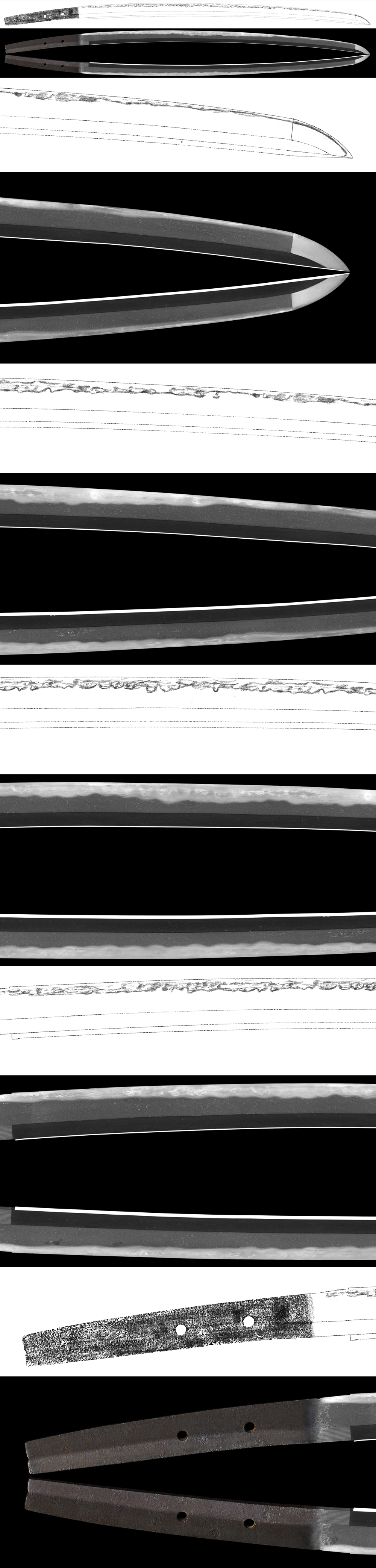 The shape is shinogi-zukuri katana with longish kissaki, iori-mune.