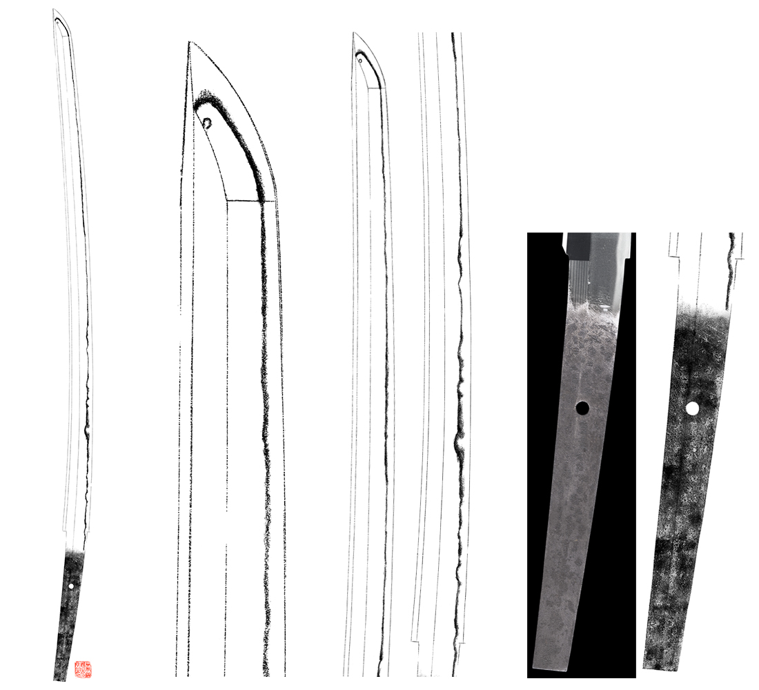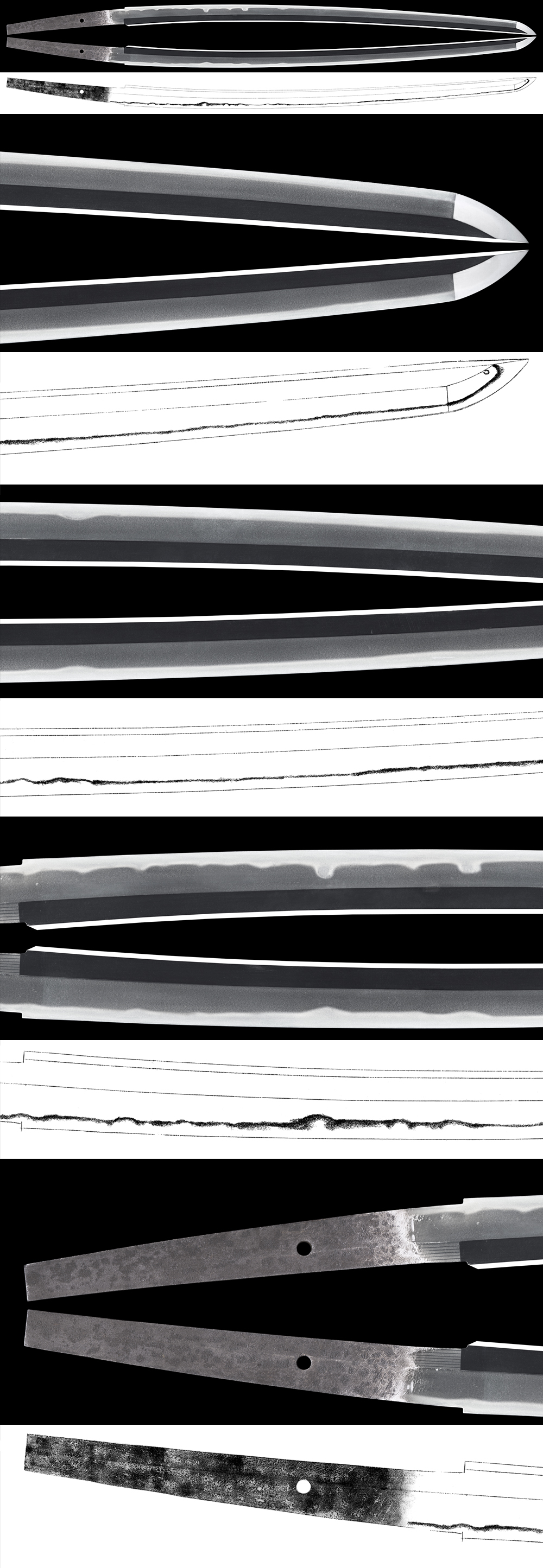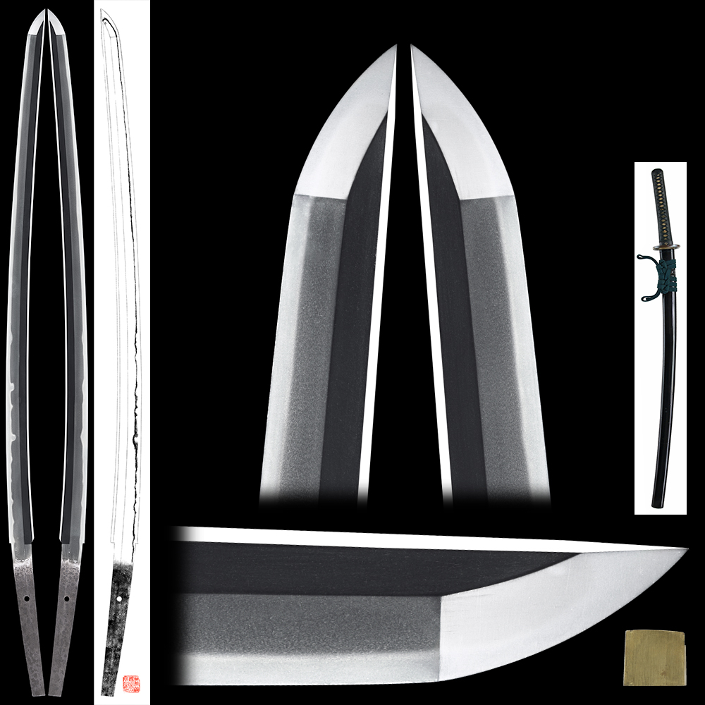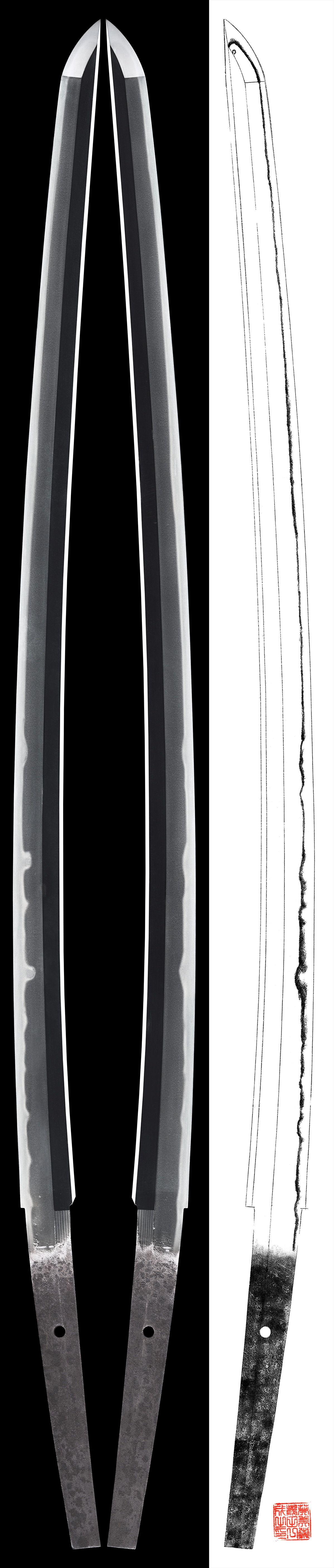 Shape : Wide and thick, long Kissaki Suriage Mumei Katana.