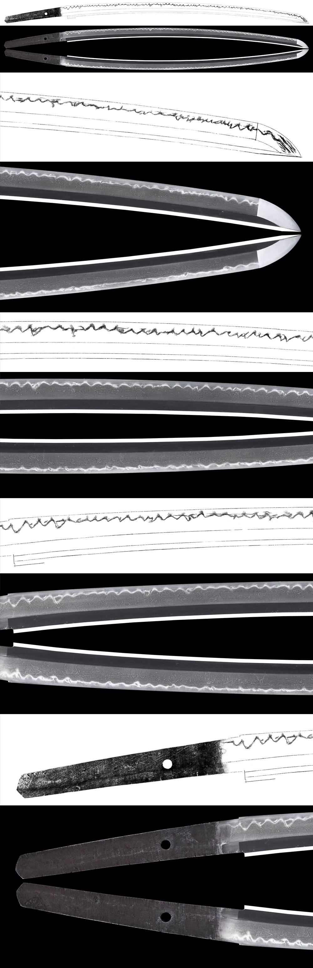 Hamon : Ko-Nie Deki, Gunome Midare and Togari Gunome mix.