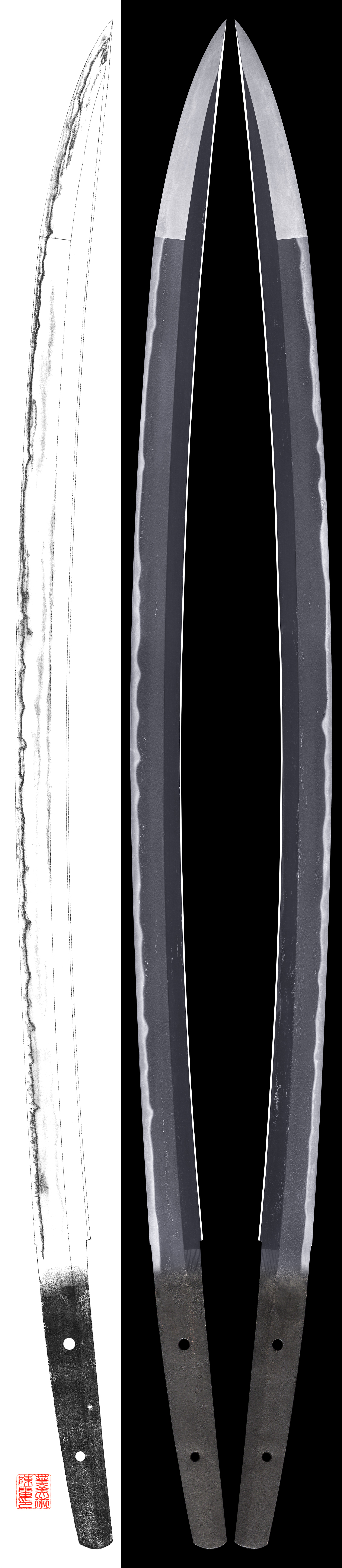 The blade is wide and thick with deep sori and long kissaki gorgeous style.