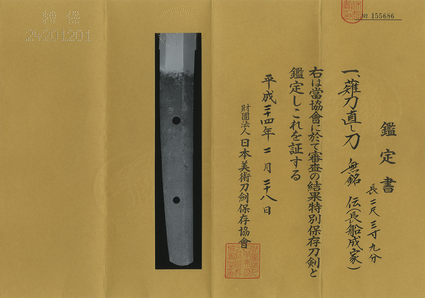 Katana in Shirasaya(NBTHK Tokubetsu Hozon paper)