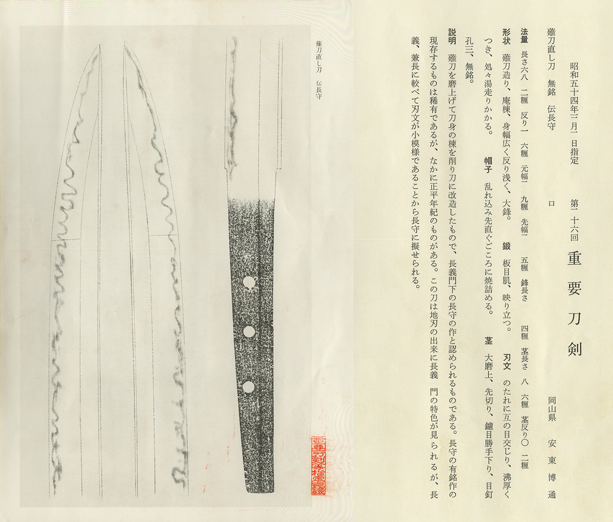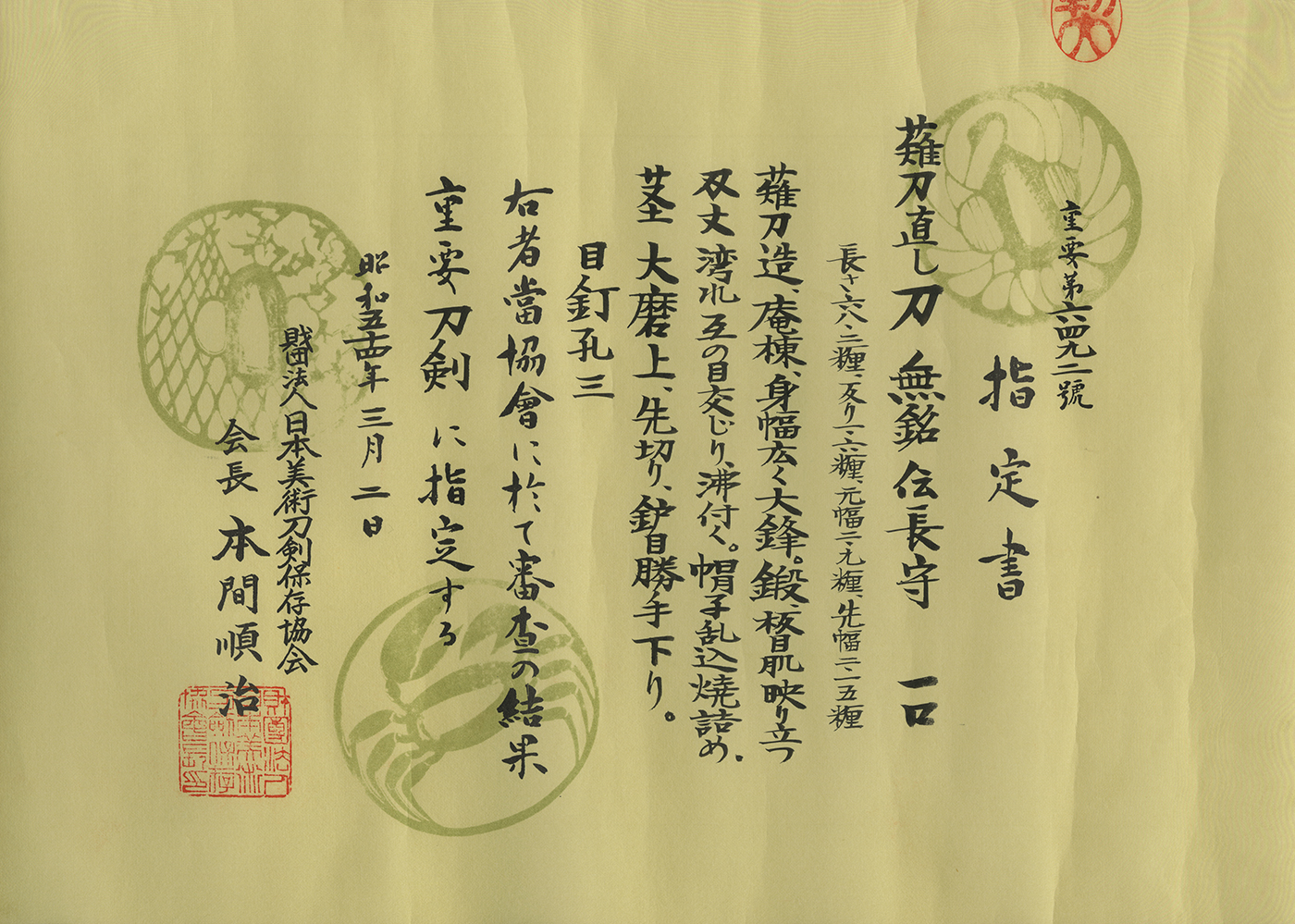 Katana : Mumei(Den-Nagamori) (26th NBTHK Juyo paper)