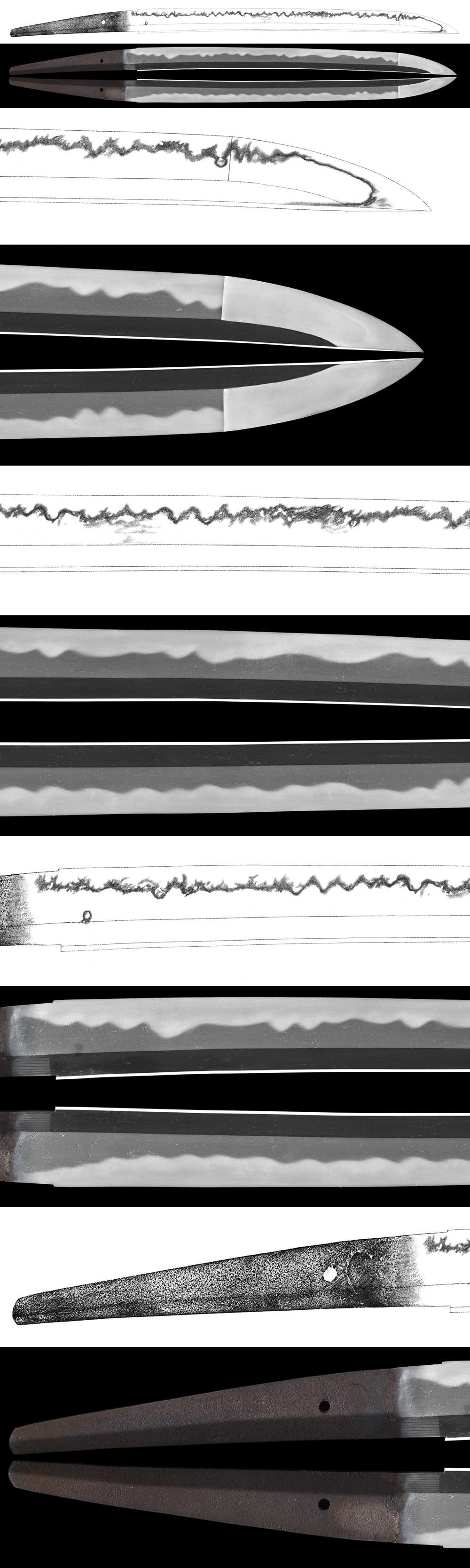 Hamon : Nie deki Gonome midare mix Togari Gunome with deep Nioikuchi.