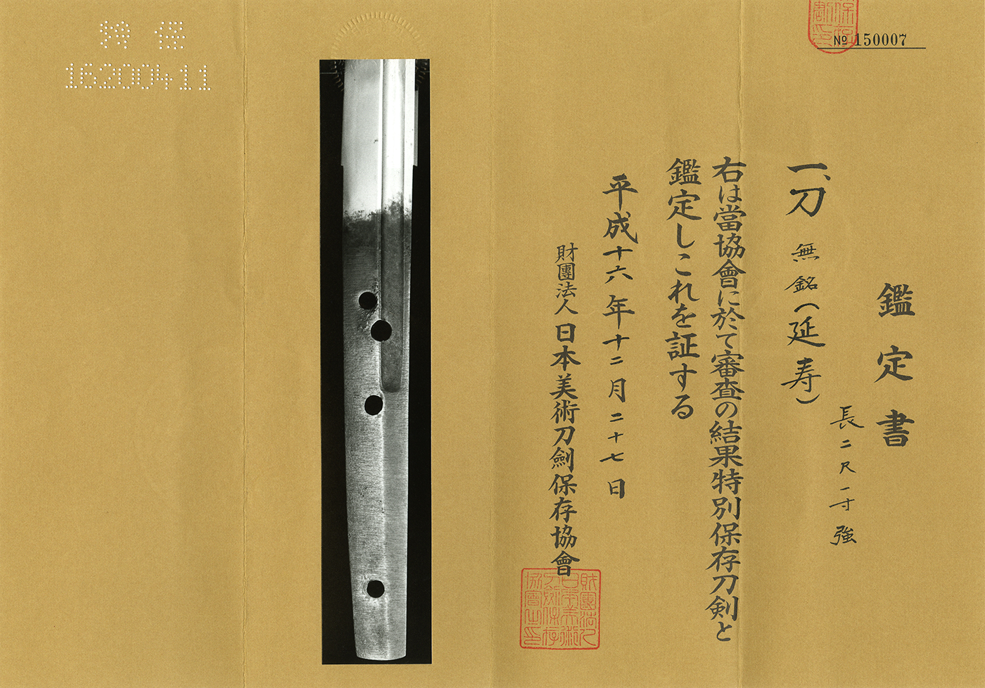 This Mumei(unsigned) attributed as Enjyu. belongs to Jyo-Jyo saku ranking.