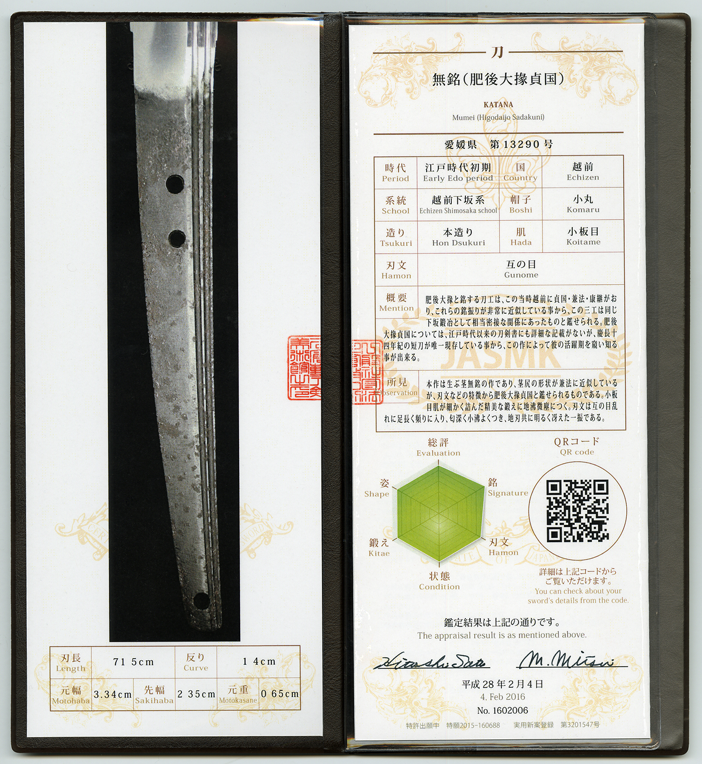 The Kurashiki museum appraised as Higo Daijo Sadakuni.
