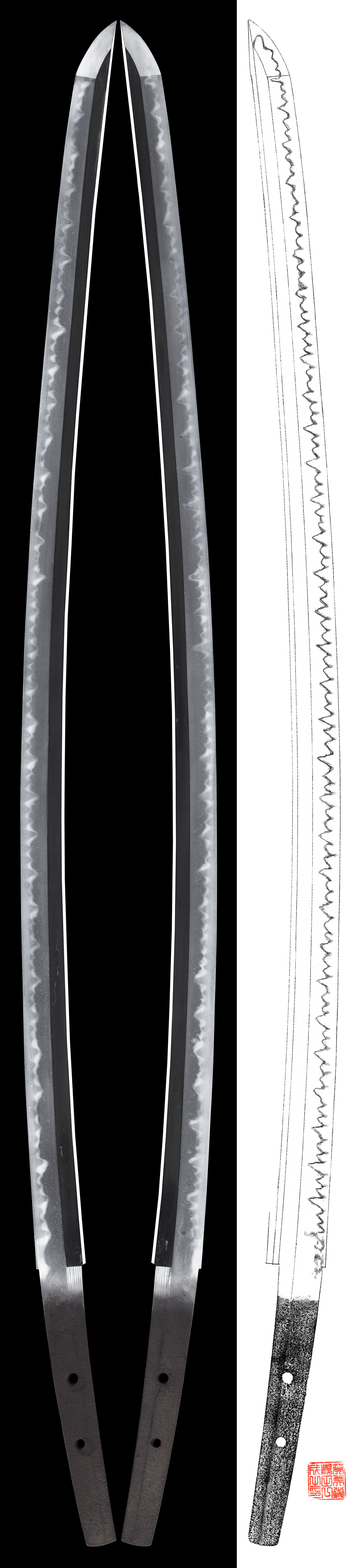 Special feature : This sword has deep curve with the pattern of sanbonsugi.