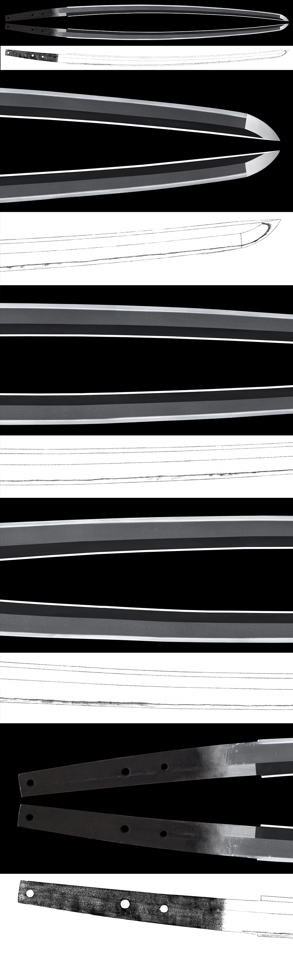 Hamon : Niedeki suguha with kasha bright. Boshi is round shape.
