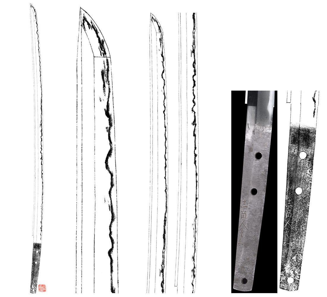 Hamon : Niedeki Gunome midare hamon and in Ha, there are many Sunagashi and Kinsuji work.