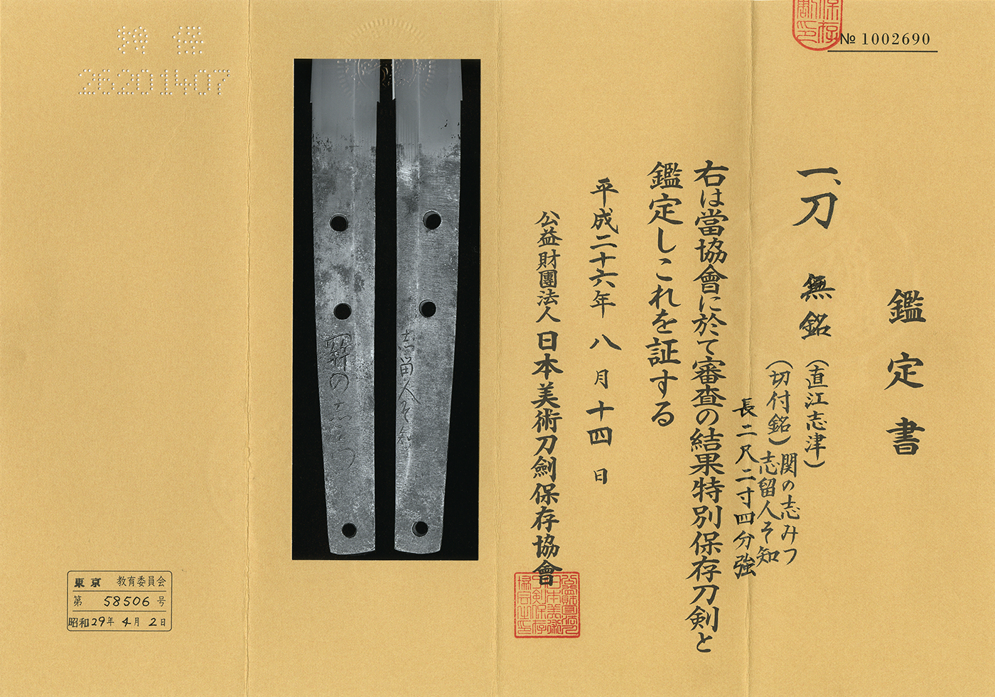 NBTHK Tokubetsu Hozon paper