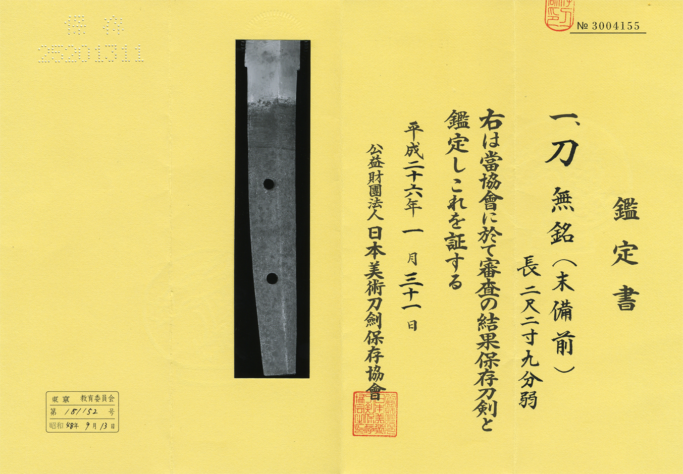 Signature : Mumei(unsigned) attributed as Sue Bizen school.