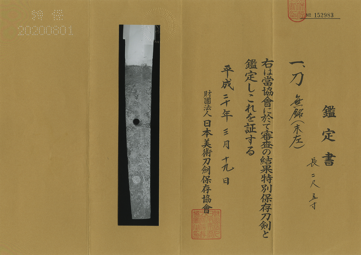 This sword is said to be the Sue-Sa school that was active around middle to late Nanbokucho period.