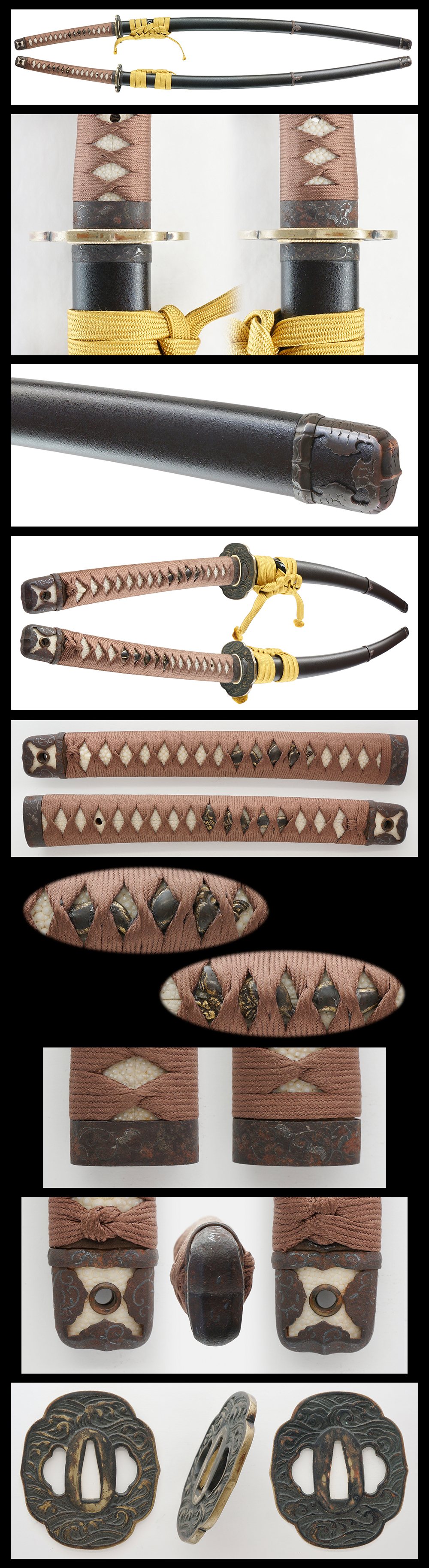Tsuba : On the brass tsuba, same waves are engraved.
