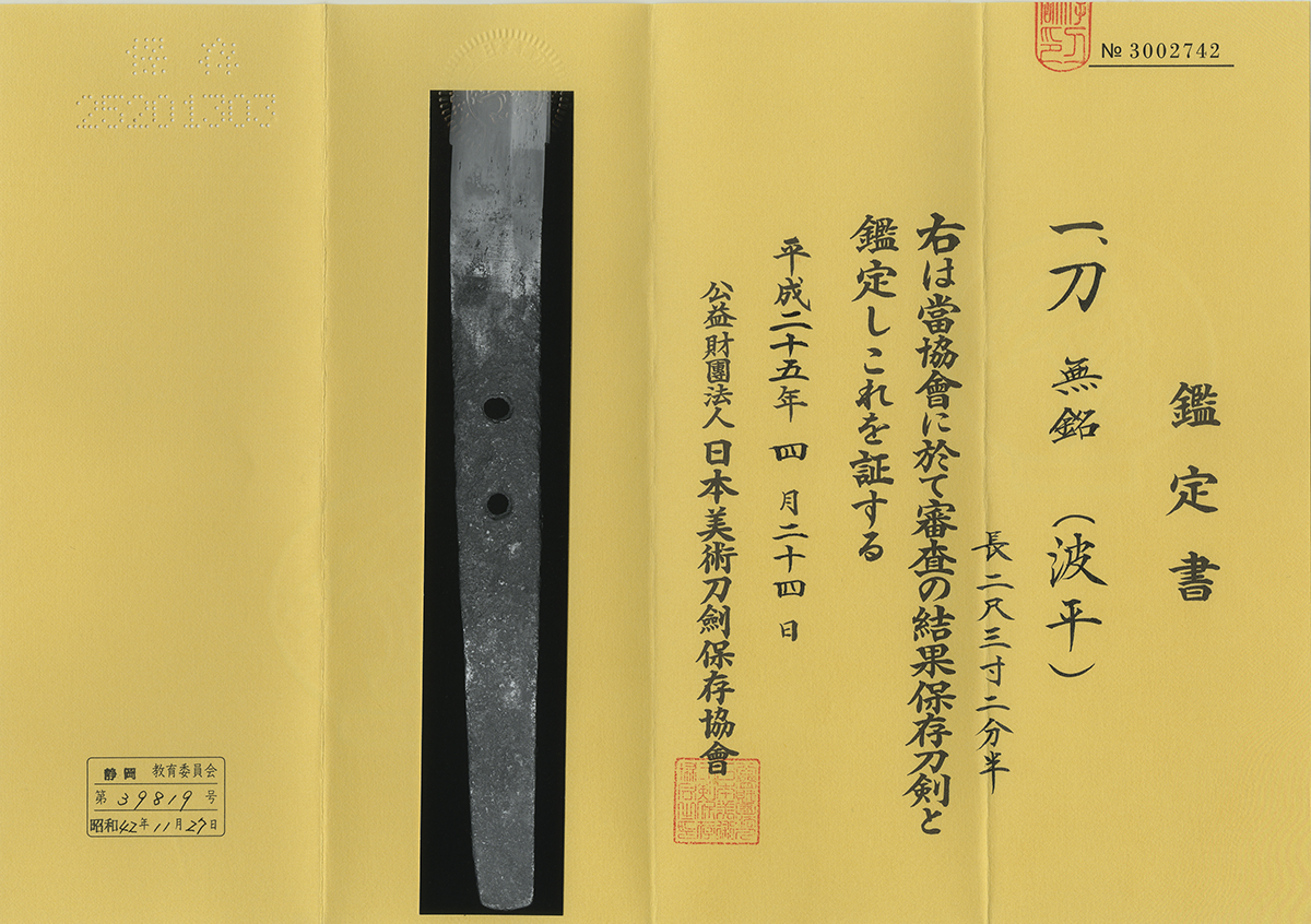 Signature : Mumei(unsigned) attributed as Naminohira.