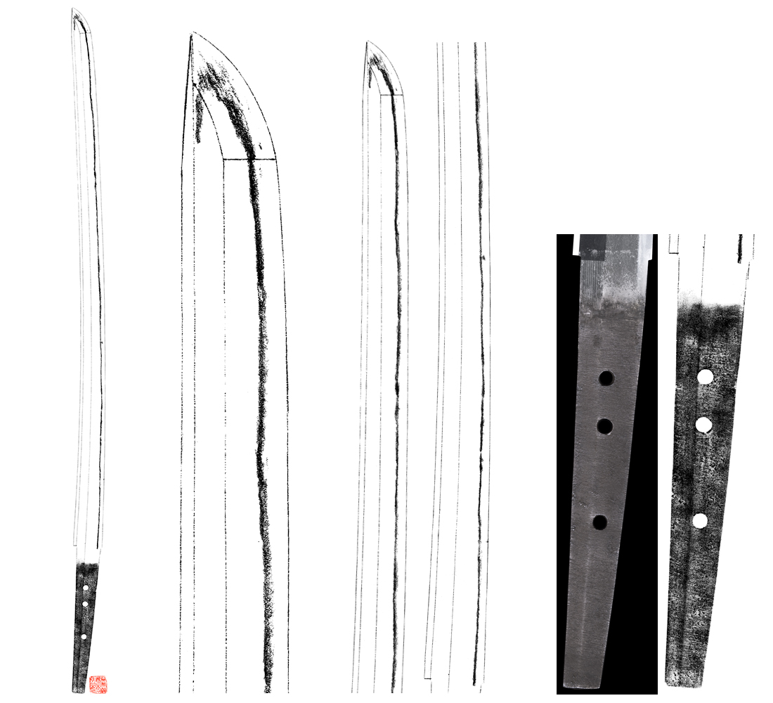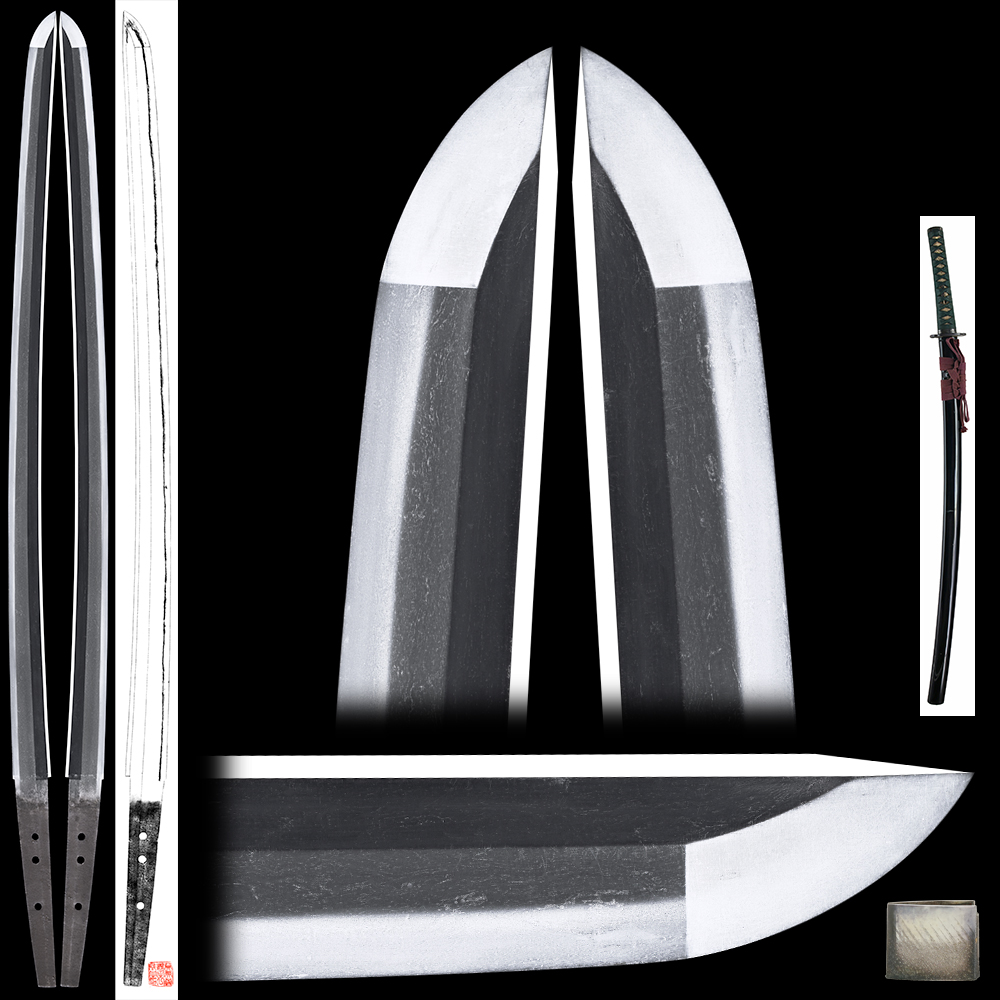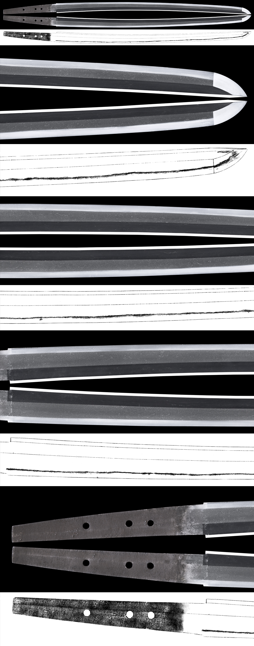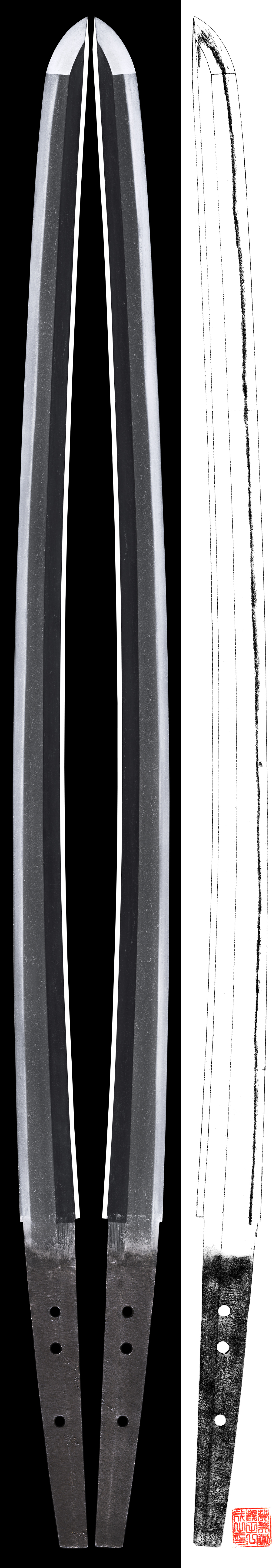 Shape : The blade is oosuriage mumei(cut shortened) with rather small sori with longer kissaki.